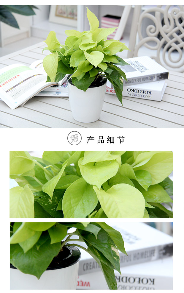 是否含花盆:含盆;适用空间:阳台,客厅,办公桌,书房;包装清单:黄金绿萝X1 盆X1;