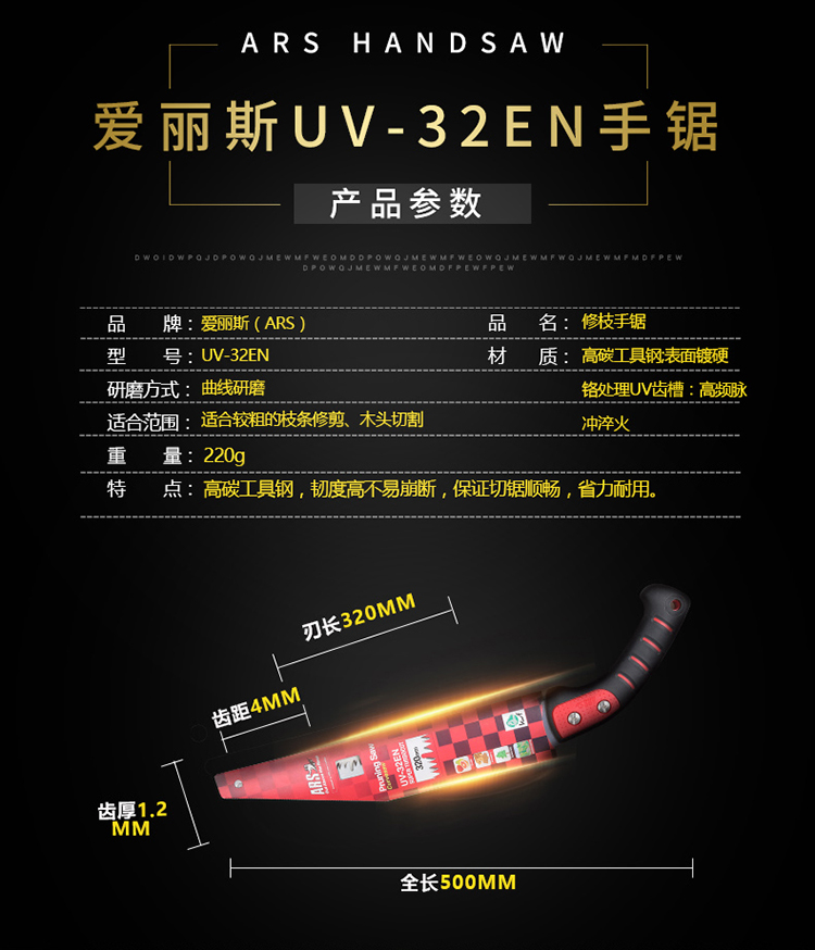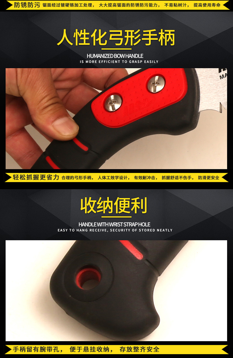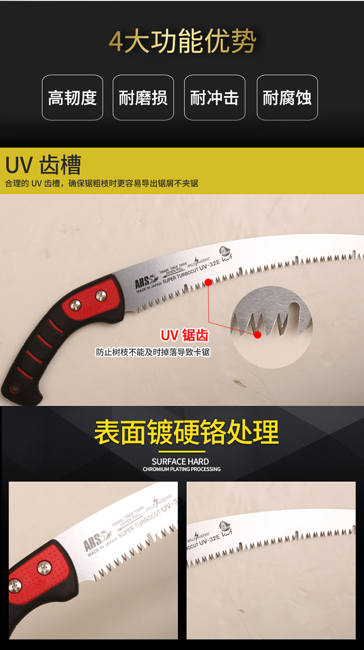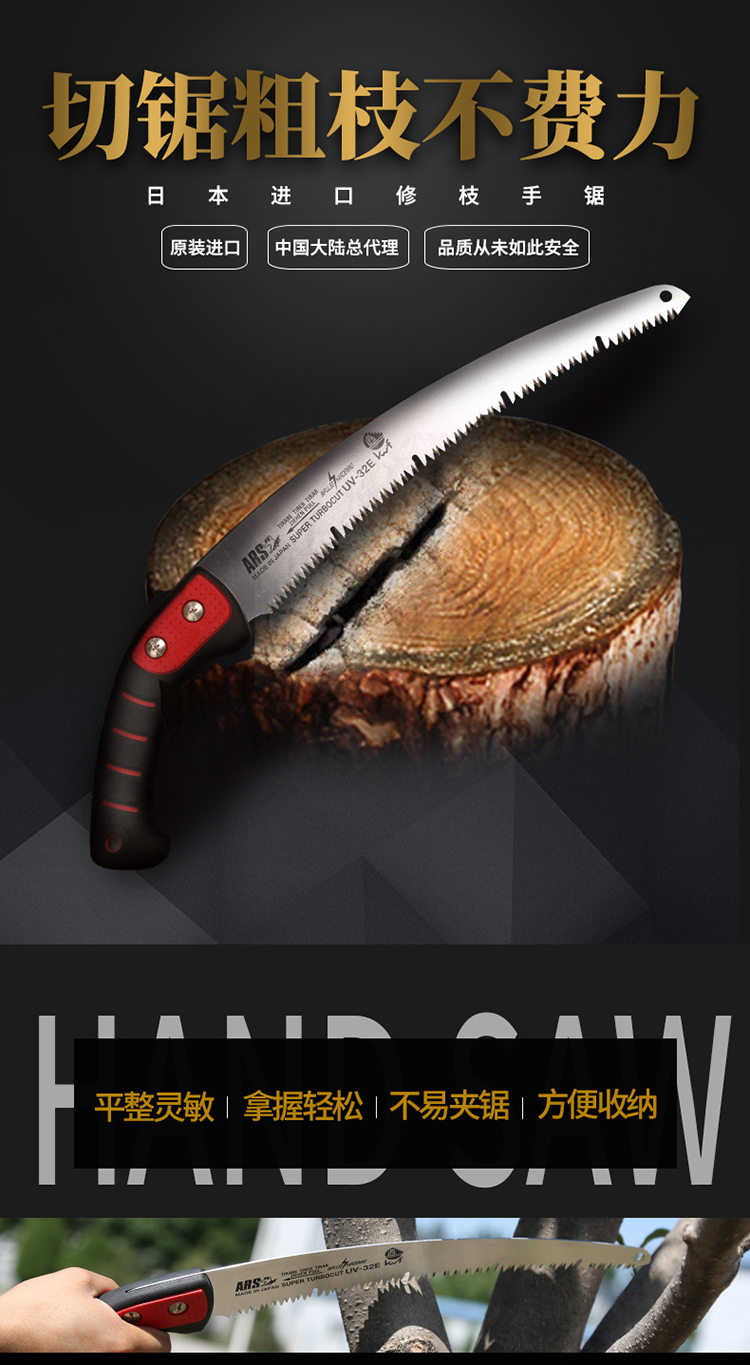 主体材质:高碳钢/工具钢;刀/剪/锯:手锯;产地:进口;包装清单:修枝锯;