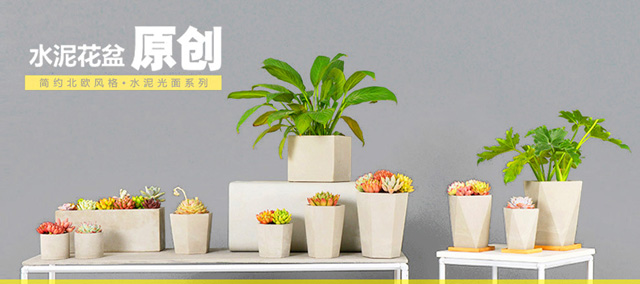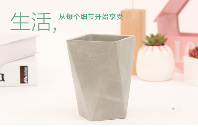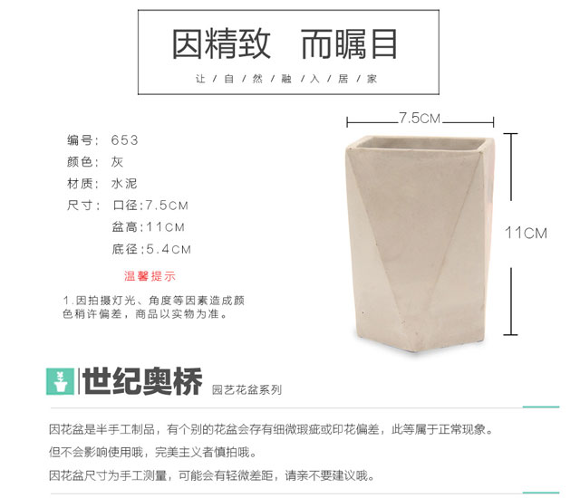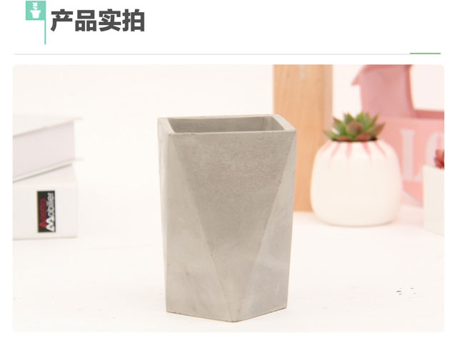 世纪奥桥 现代创意三角光面四方口透气水泥花盆 室内办公桌面绿植多肉盆栽肉肉花盆 小号653