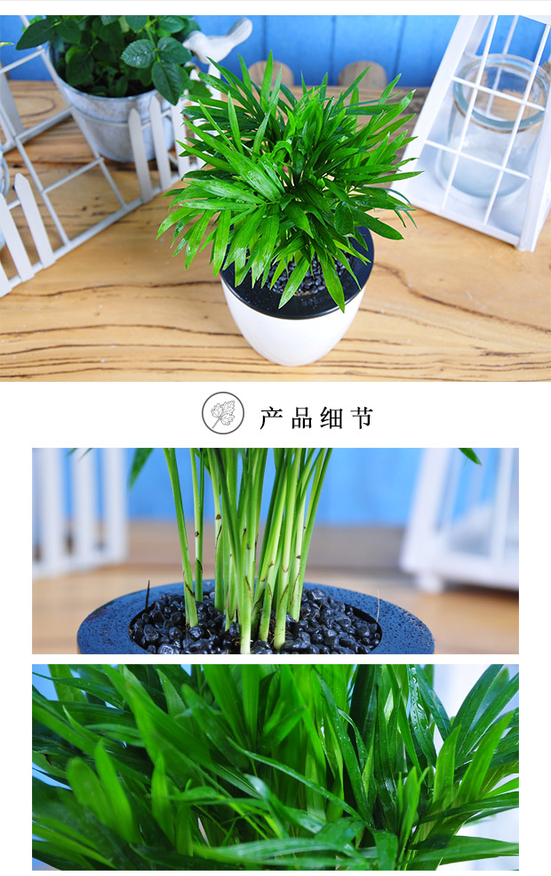是否含花盆:含盆;适用空间:阳台,客厅,办公桌,书房;包装清单:袖珍椰子X1 盆X1;