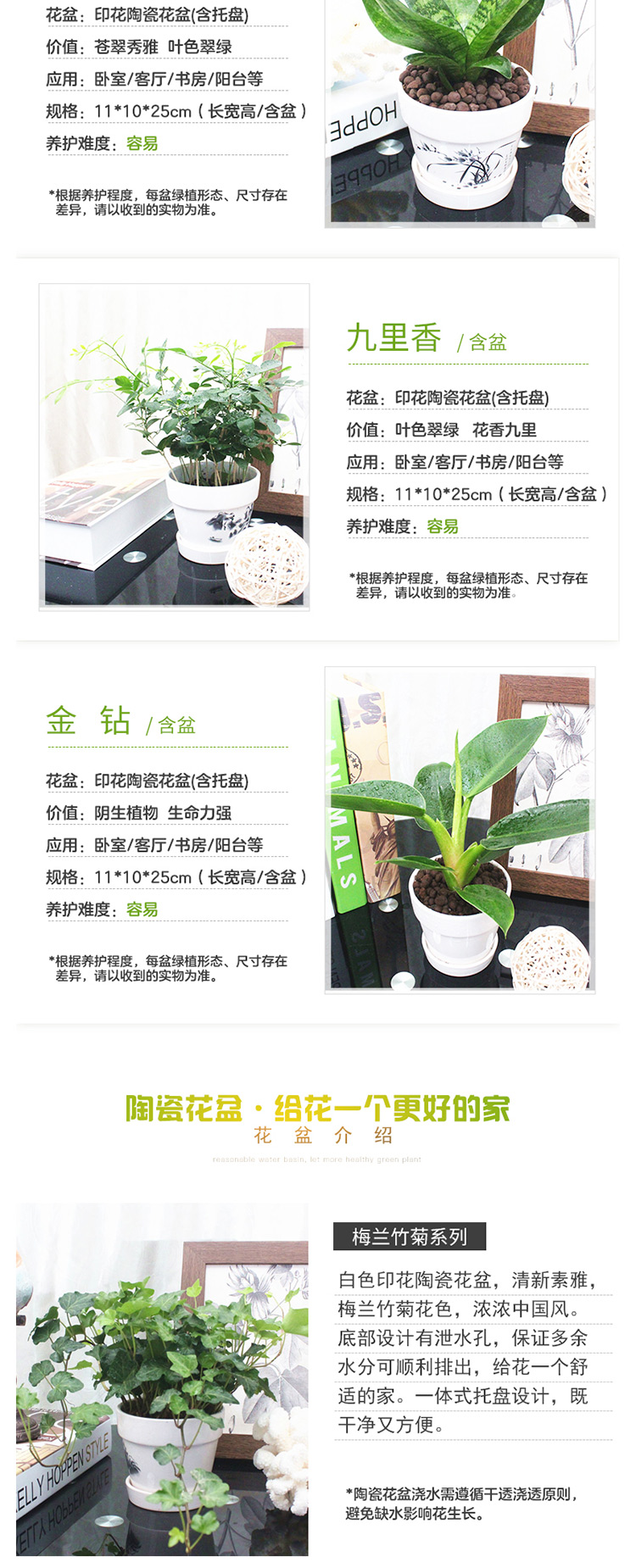 是否含花盆:带盆栽好;适用空间:庭院,阳台,客厅,办公桌,卧室,书房;包装清单:文竹×1、白色印花陶瓷花盆×1、包装箱×1;
