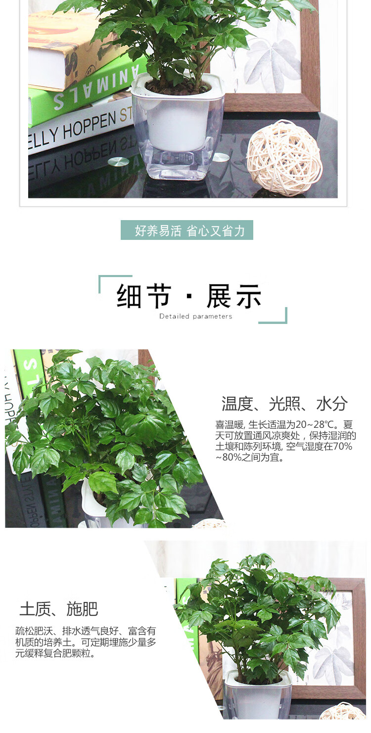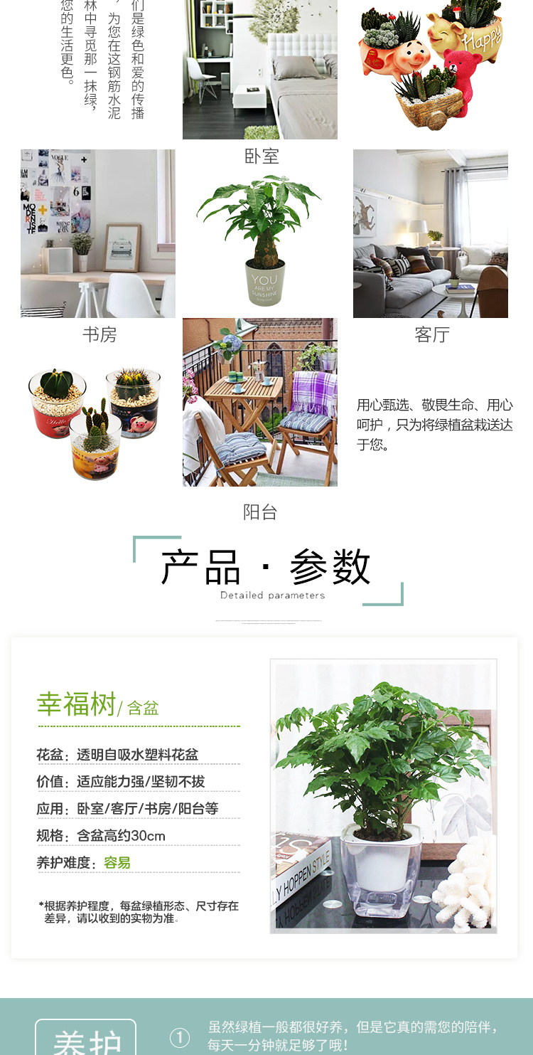 是否含花盆:带盆栽好;适用空间:庭院,阳台,客厅,办公桌,卧室,书房;植物品种:幸福树;植物类别:观叶植物;包装清单:幸福树×1、透明自吸水塑料花盆×1、包装箱×1;