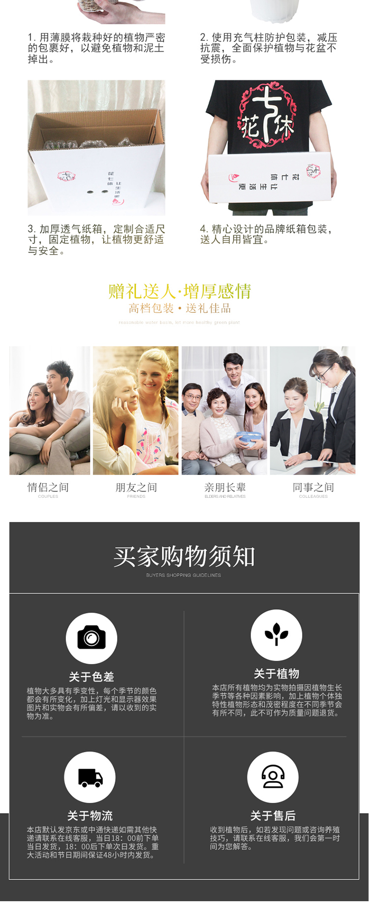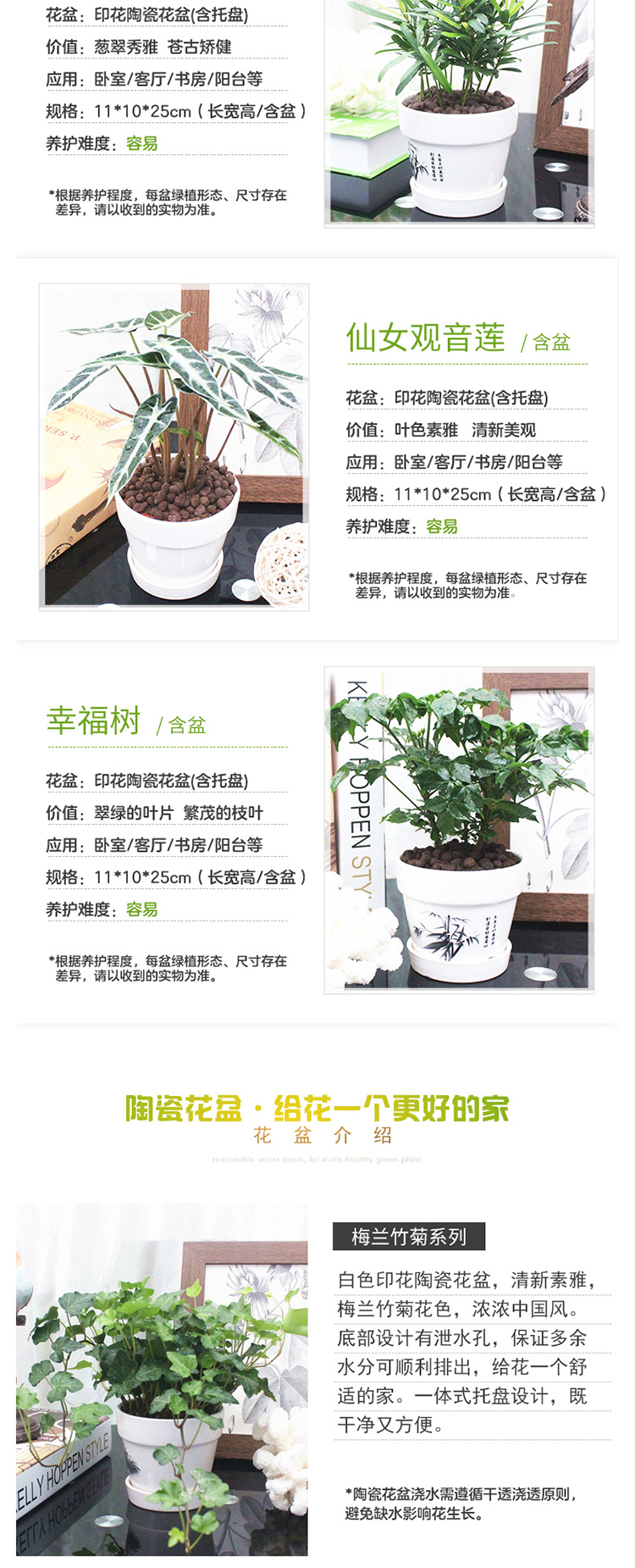 是否含花盆:带盆栽好;适用空间:庭院,阳台,客厅,办公桌,卧室,书房;包装清单:鸿运当头×1、白色印花陶瓷花盆×1、包装箱×1;