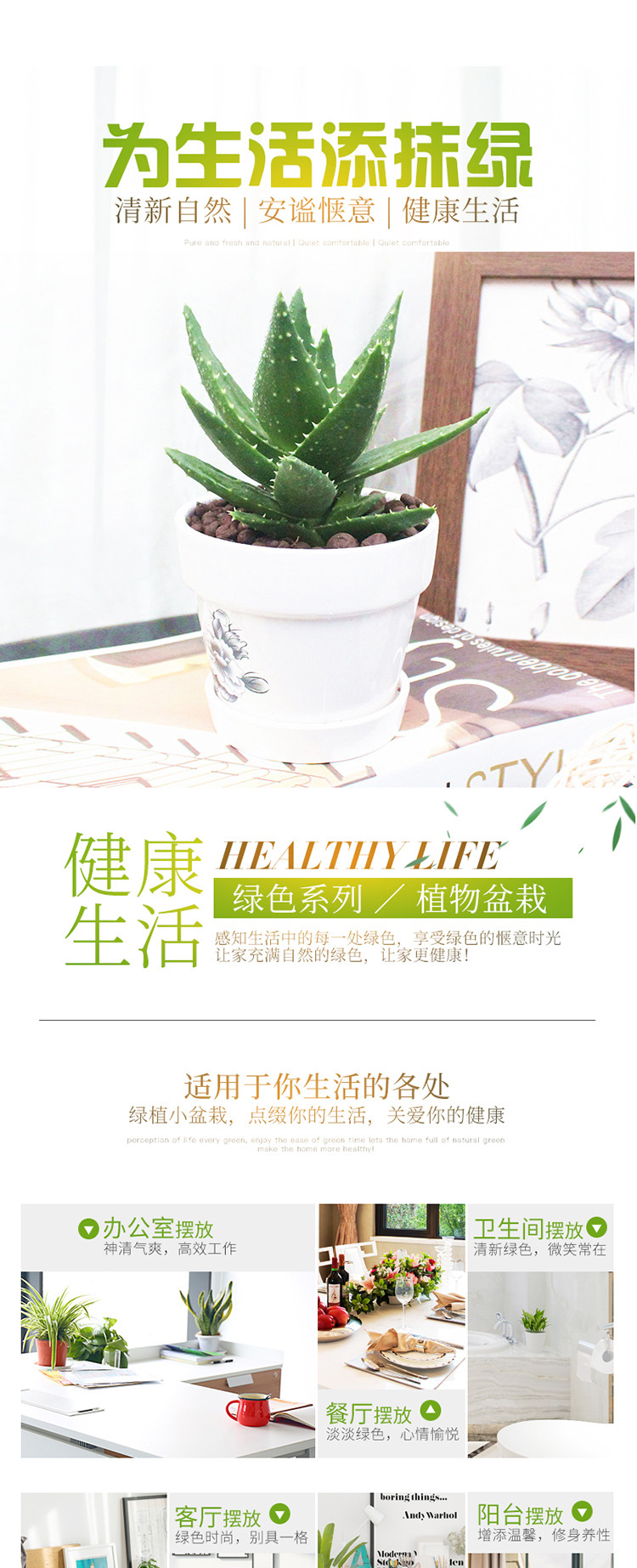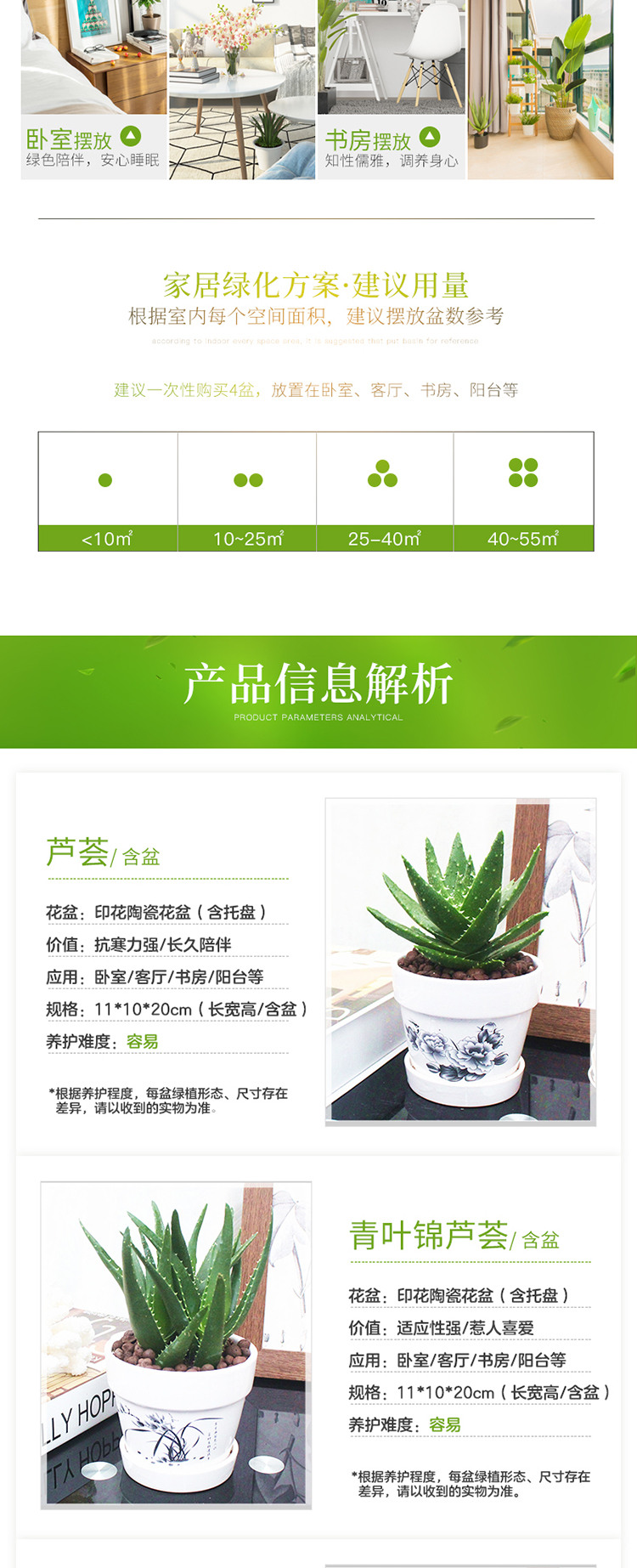 是否含花盆:带盆栽好;适用空间:农田,庭院,阳台,客厅,办公桌,卧室,书房;包装清单:青叶锦芦荟×1、白色印花陶瓷花盆×1、包装箱×1;