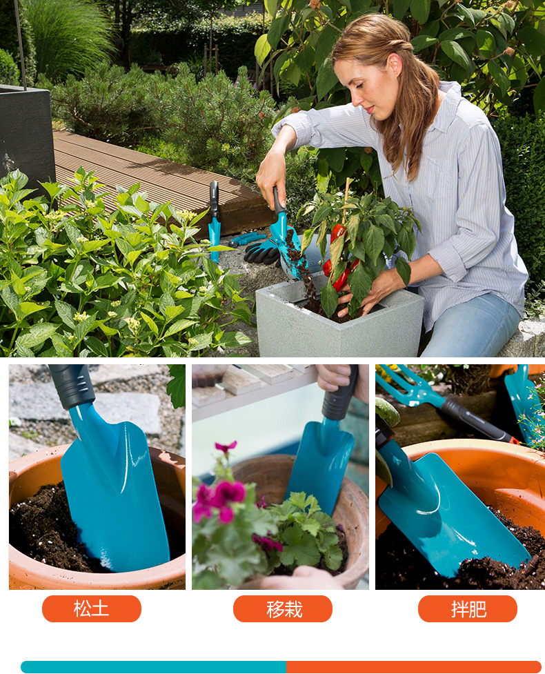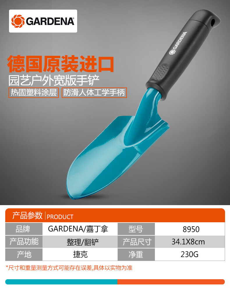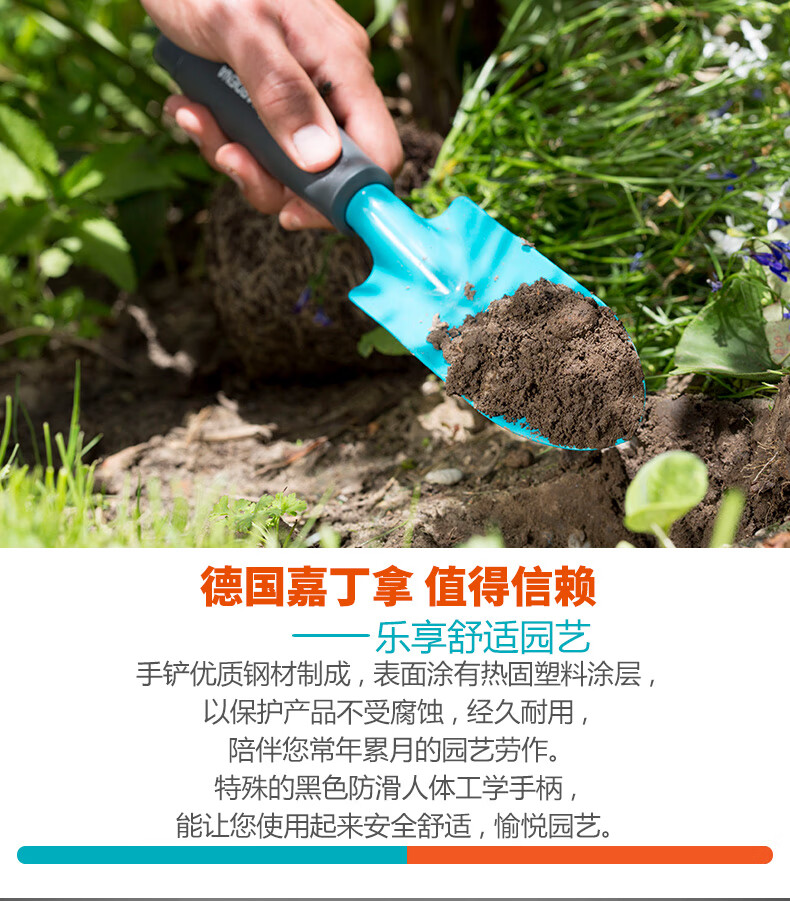 铲/耙/锹/锄:铲;洒水浇水壶:其它;分类:铲/耙/锹/锄;材质:其它;刀/剪/锯:盆景工具;产地:进口;品牌:嘉丁拿(GARDENA);包装清单:嘉丁拿进口园艺手铲*1;