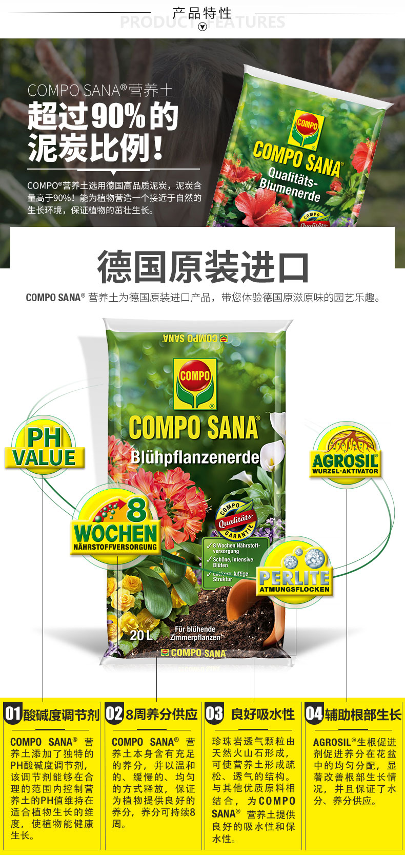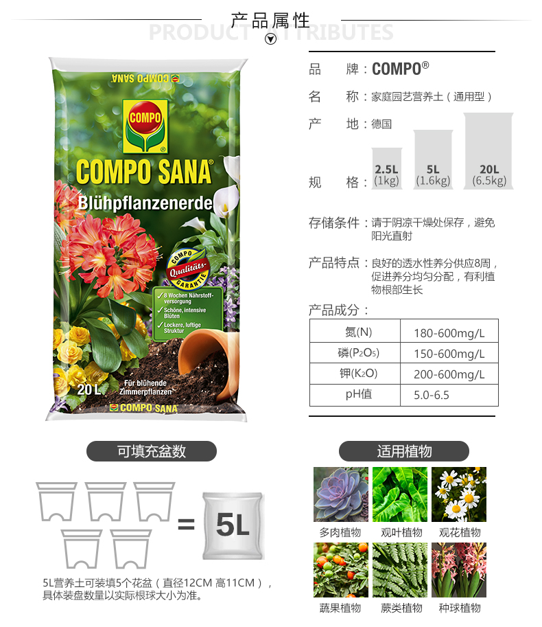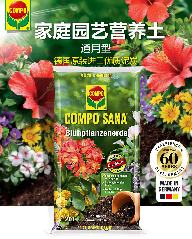 适用对象:通用型;性状:固体;营养类型:其它;品牌:COMPO;包装清单:COMPO 家庭园艺室内外花卉盆栽植物通用型泥炭种植营养土 20L*1;