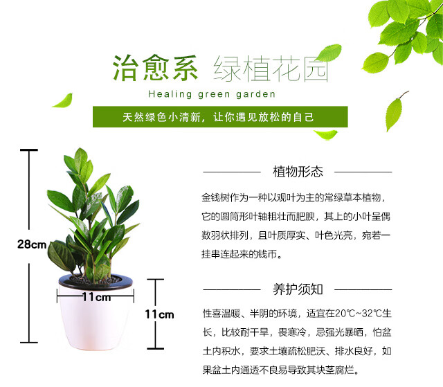 是否含花盆:含盆;适用空间:阳台,客厅,办公桌,卧室,书房;植物品种:金钱树;植物类别:观叶植物;包装清单:金钱树x1,花盆x1;