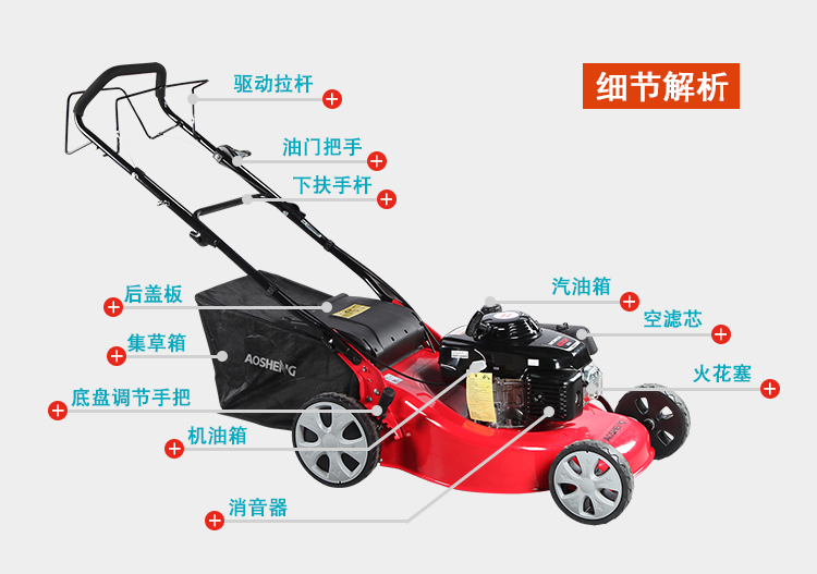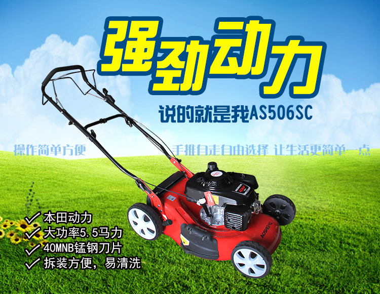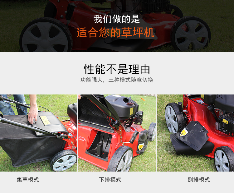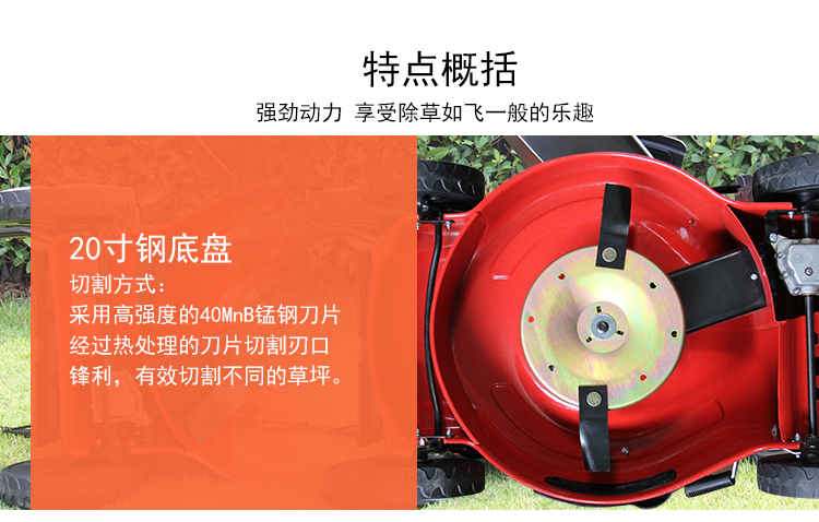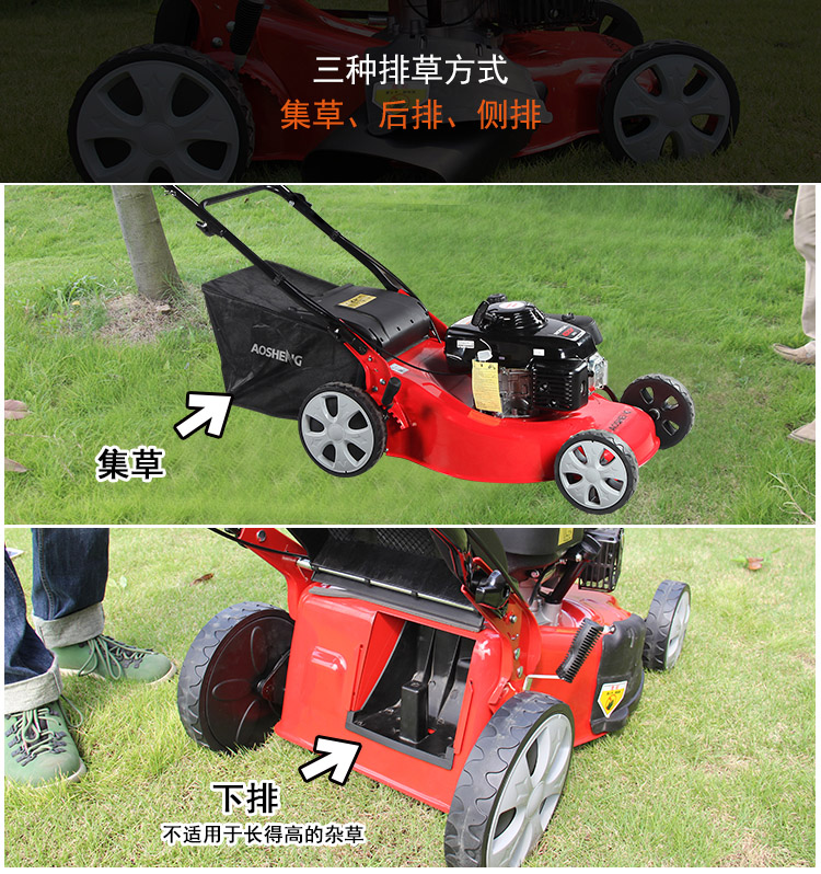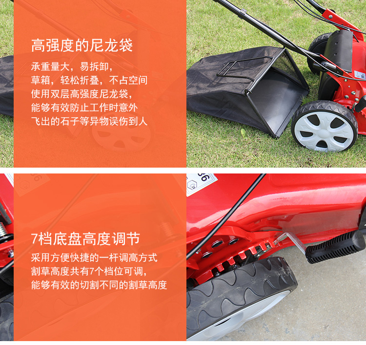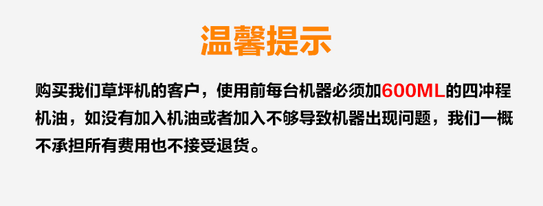 适用对象:其它,草坪;机械类型:草坪修剪机;动力类型:四冲程;包装清单:主机*1,集草袋*1,集草架*1,手提工具袋*1 ,火花塞套筒*1,套筒手柄(白)*1,说明书*1,合格证*1,装箱清单*1,三包凭证*1;