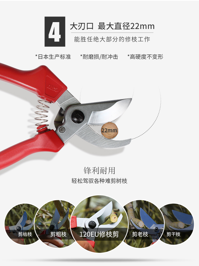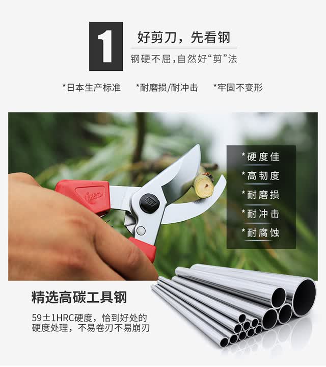 主体材质:高碳钢/工具钢;刀/剪/锯:修枝剪;产地:进口;包装清单:修枝剪一把;