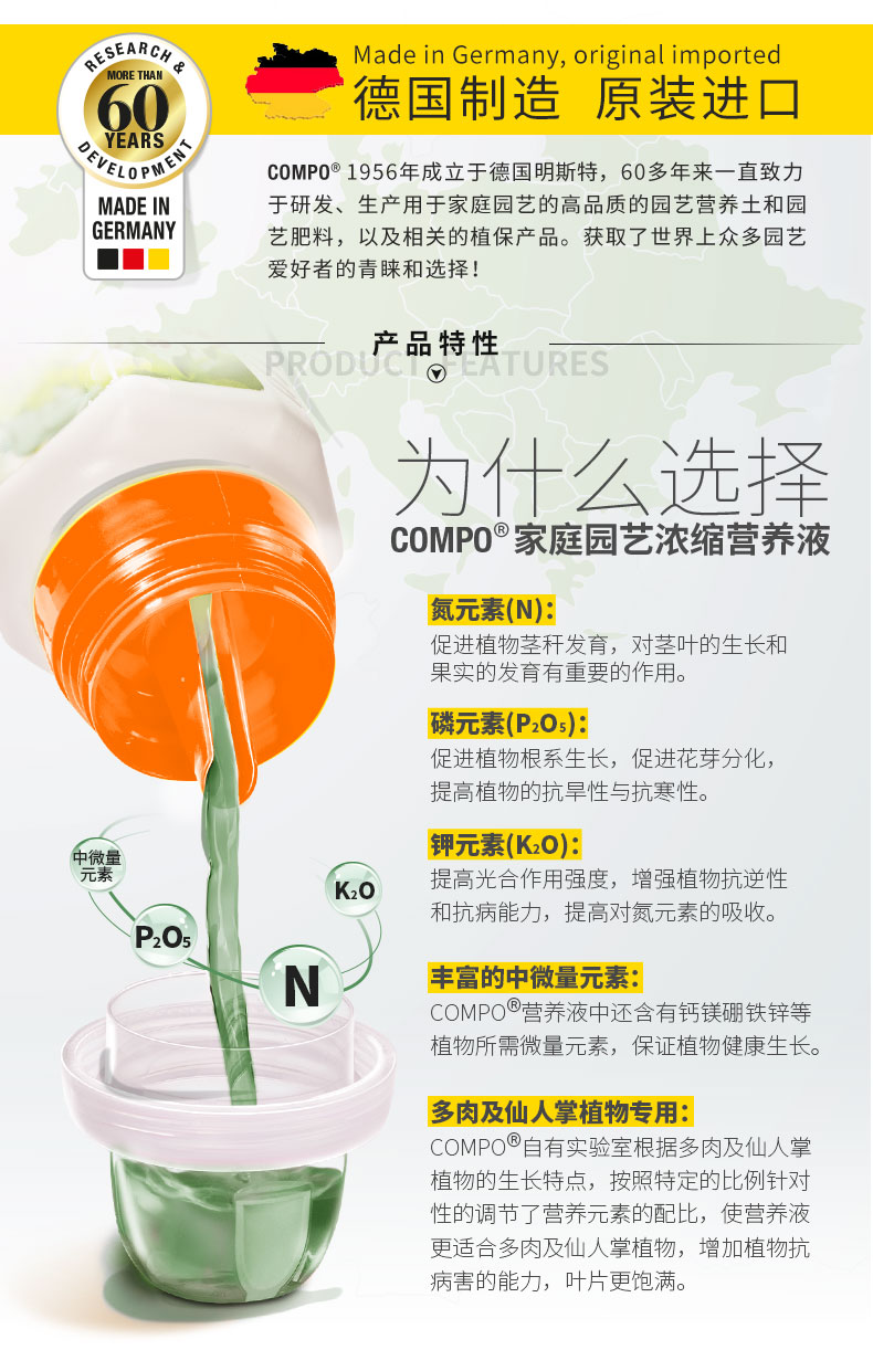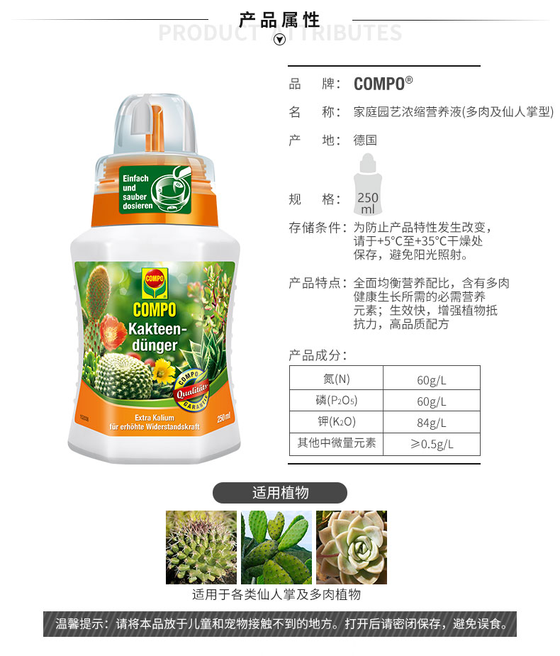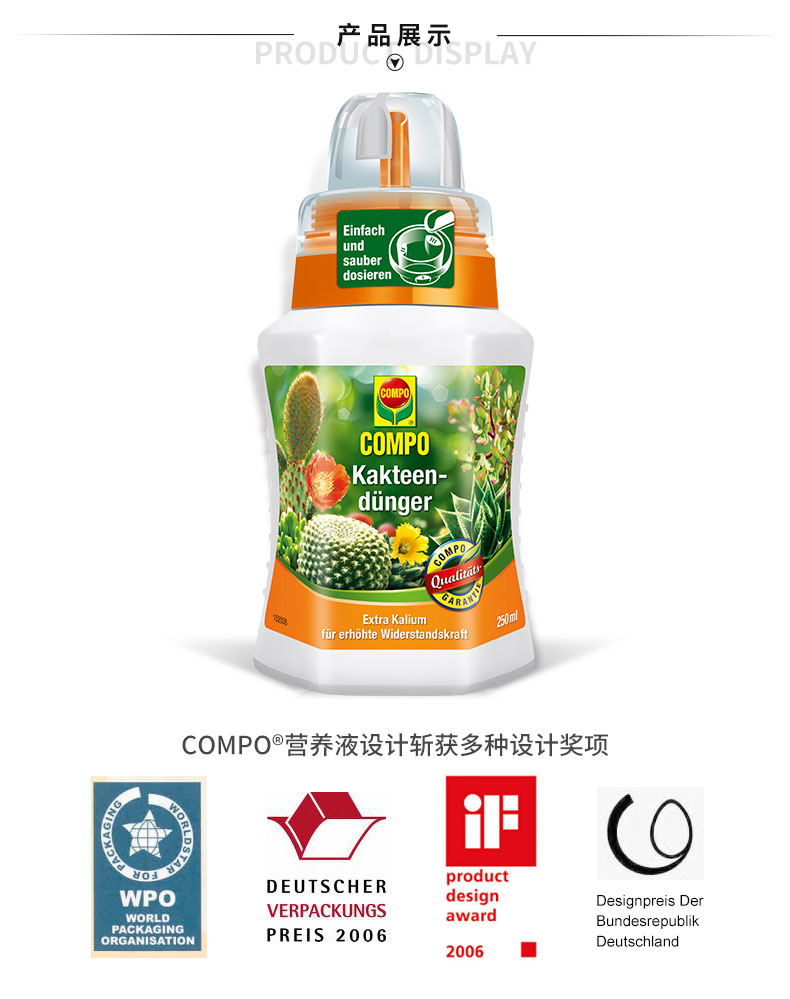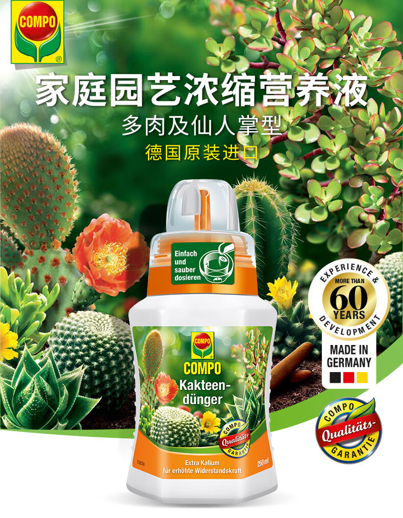 类型:其它;品牌:COMPO;包装清单:德国进口 COMPO 家庭园艺仙人掌水溶复合肥料多肉植物专用营养液 250ml*1;