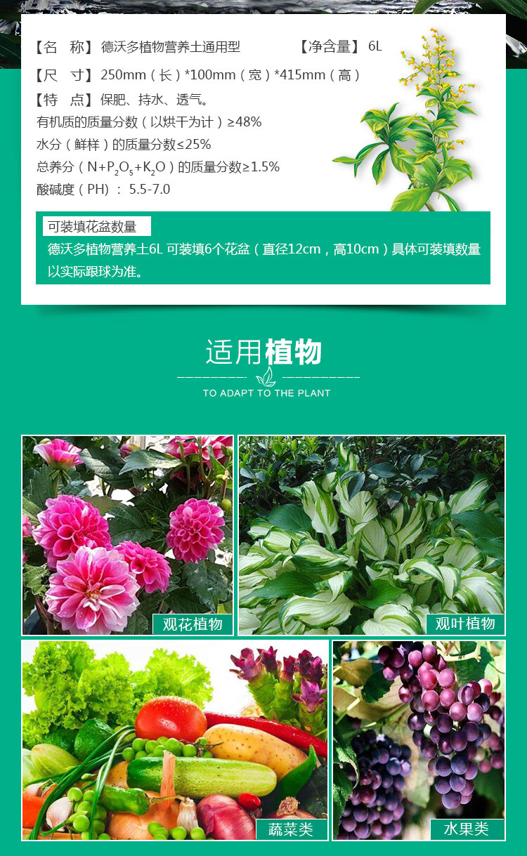 类型:其它;品牌:德沃多;包装清单:植物营养土6L-通用型*1;