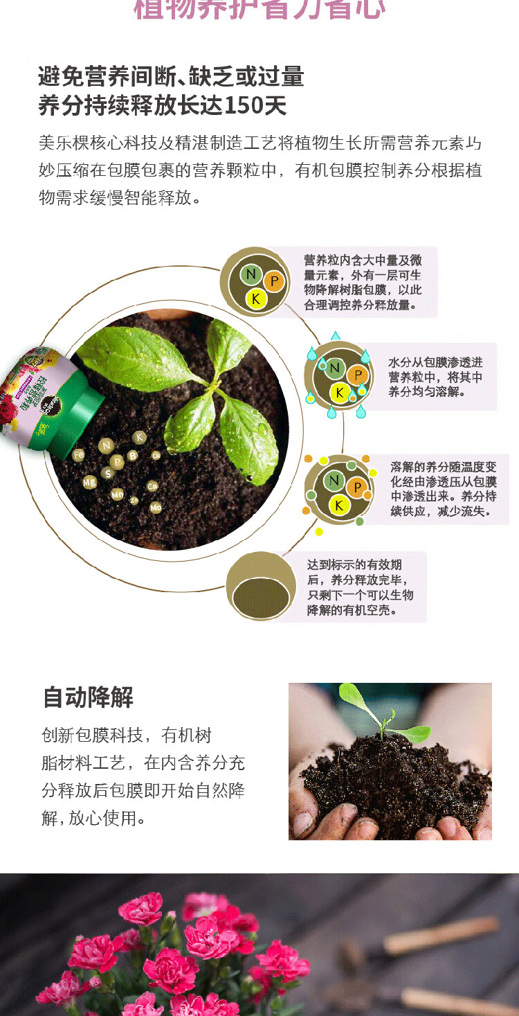 适用对象:观花植物;性状:固体;营养类型:控释肥;品牌:美乐棵;包装清单:商品X1;