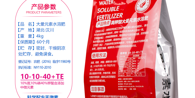 适用作物:家庭园艺,粮食作物,经济作物,蔬菜,果树;施用方法:追施,叶面喷施,冲施,滴灌;包装清单:4kg/袋,6袋/箱;