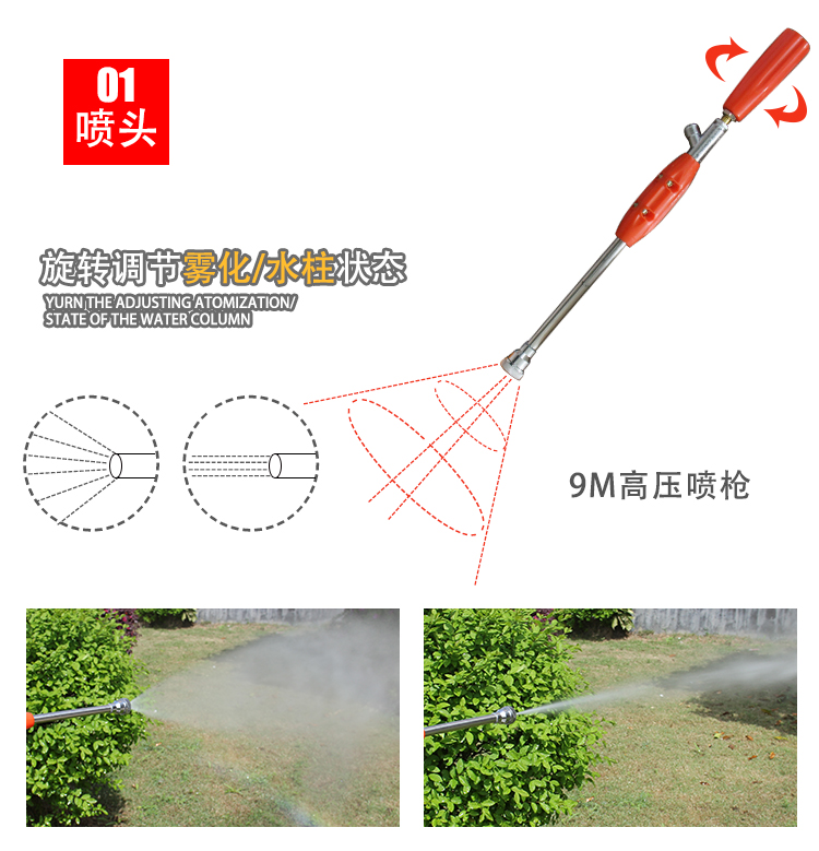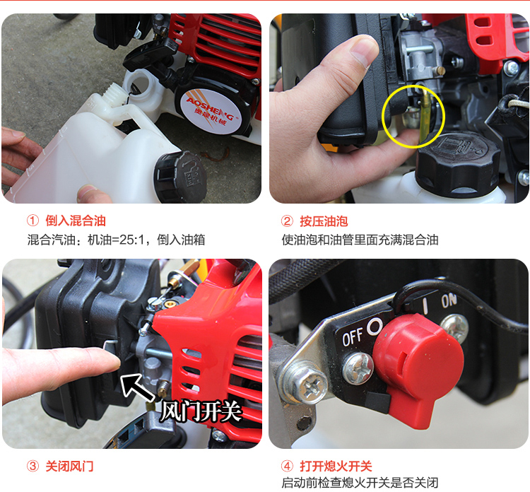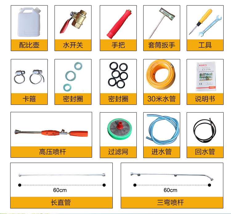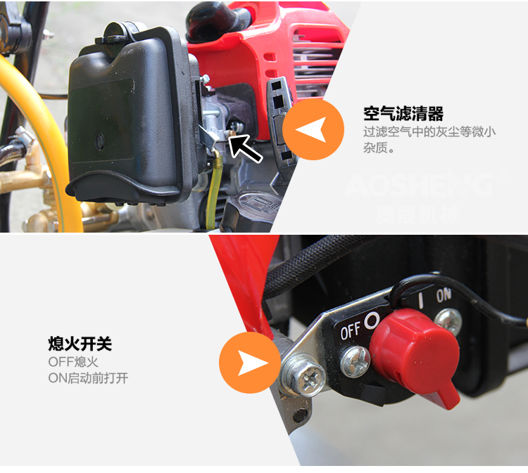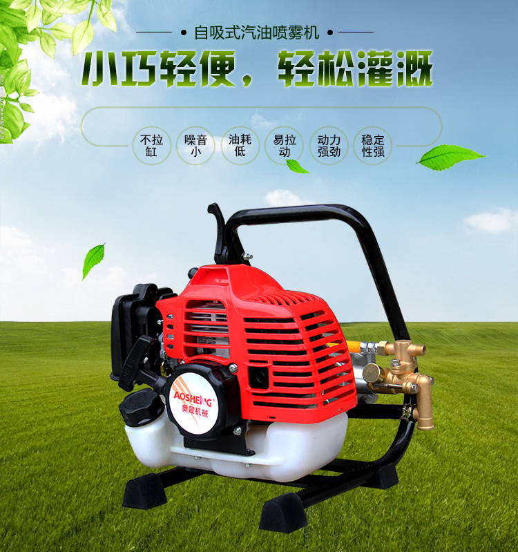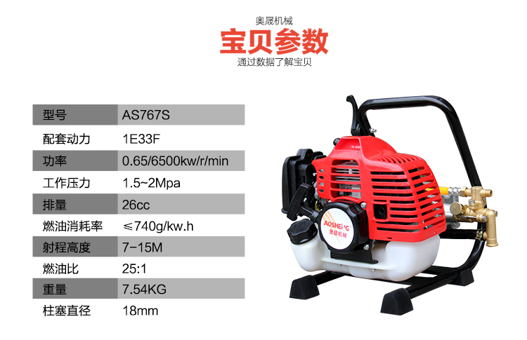机械类型:打药机;动力类型:二冲程;适用对象:树木,草坪,路旁树篱,其它;包装清单:配比壶*1 高射喷枪*1 长弯喷杆*1 大卡箍*2 小卡箍*1 v型密封圈油封*6 密封圈*2 高压软管*1 手把*1 手把密封圈*1 手把开关*1 口罩*1 套筒扳手*1 双向螺丝刀*1 呆扳手*1 内六角扳手*1 内六角扳手*1 中文说明书*1 合格证*1 装箱清单*1 三包凭证*1;
