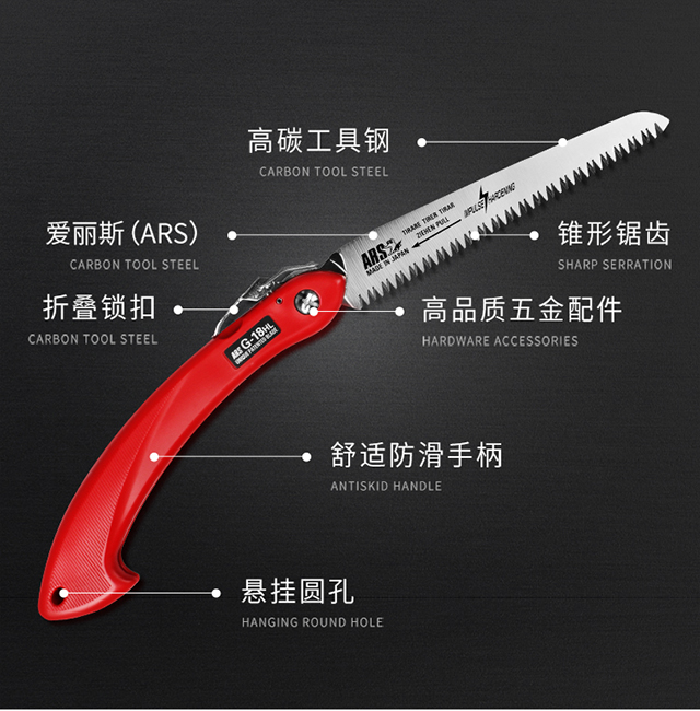 主体材质:高碳钢/工具钢;刀/剪/锯:手锯;产地:进口;包装清单:修枝锯;