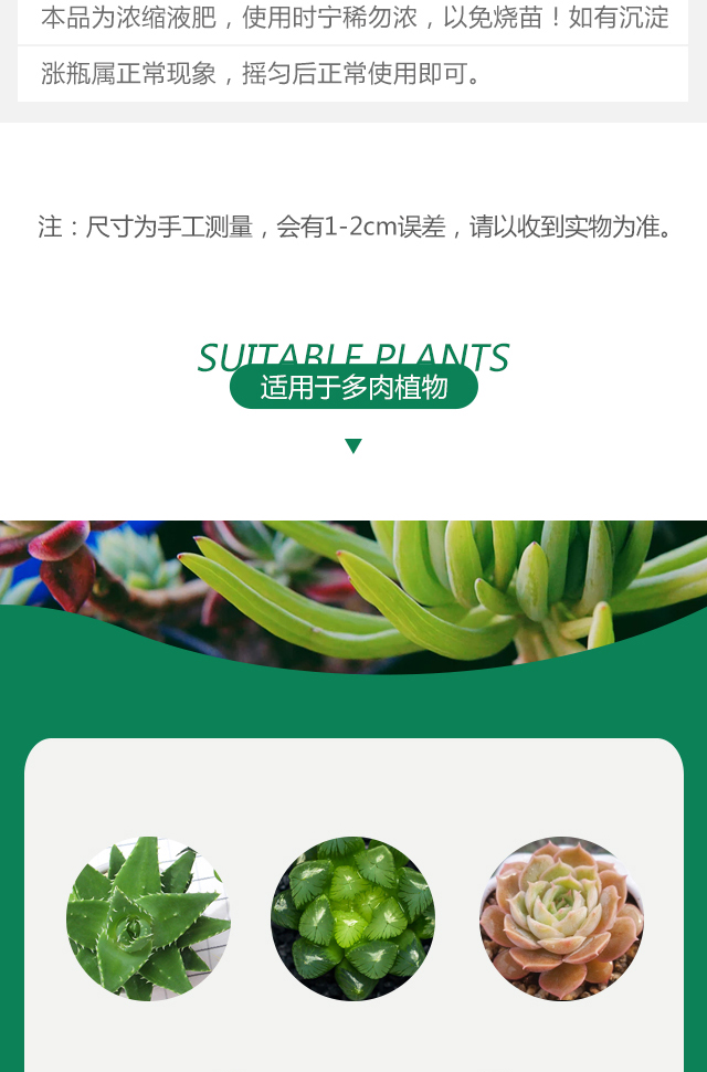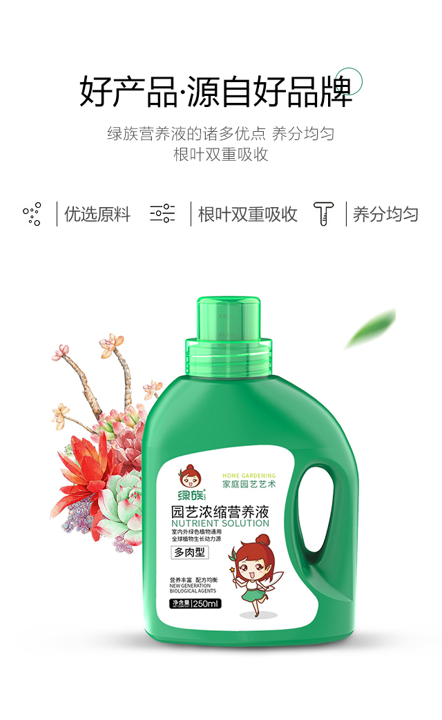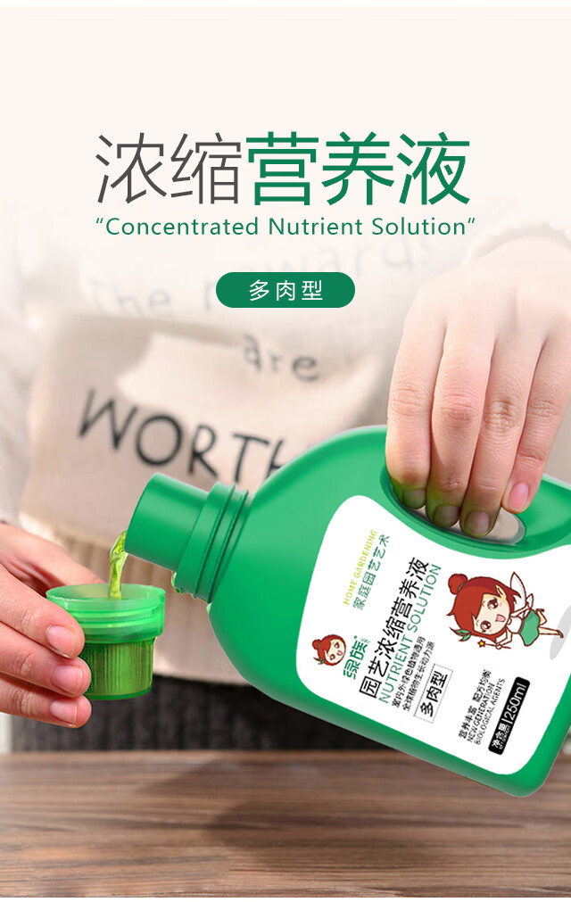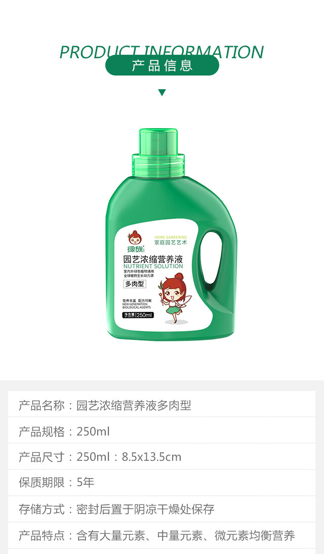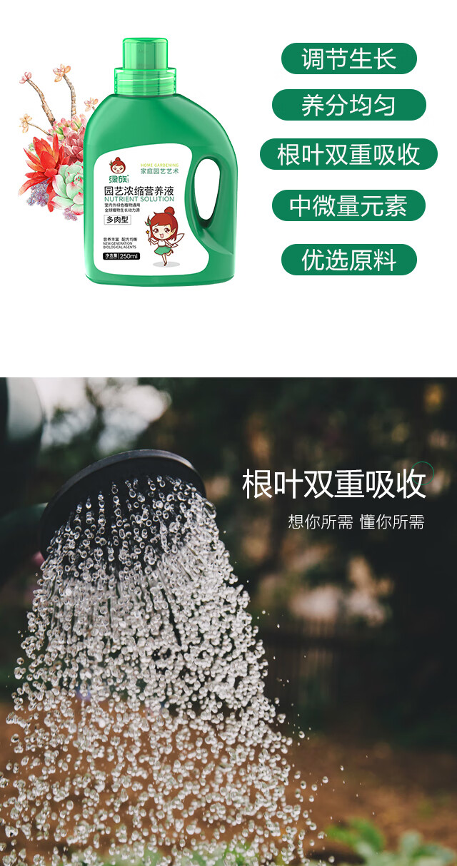 适用对象:多肉植物;性状:液体;营养类型:营养液;品牌:绿族;包装清单:植物营养液多肉型250ML*1瓶;