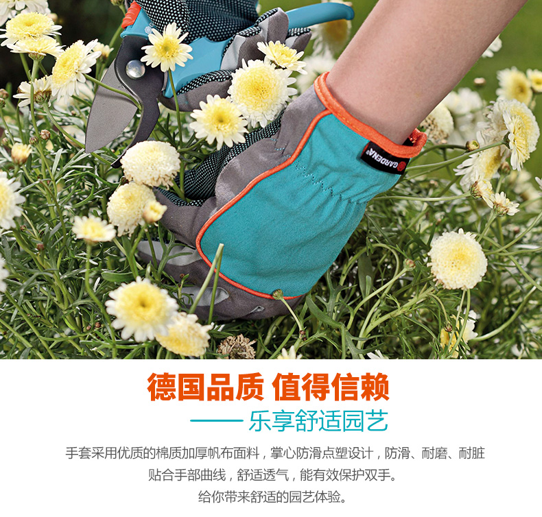 铲/耙/锹/锄:其它;洒水浇水壶:其它;分类:铲/耙/锹/锄;材质:其它;刀/剪/锯:其它;产地:国产;品牌:嘉丁拿(GARDENA);包装清单:嘉丁拿防护园艺M码手套一副;