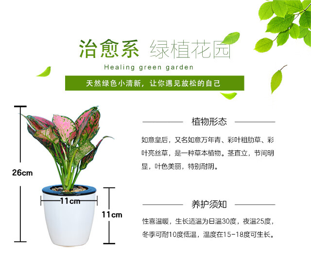 是否含花盆:含盆;适用空间:阳台,客厅,办公桌,卧室,书房;植物品种:其它;植物类别:观叶植物;包装清单:如意皇后x1,花盆x1;