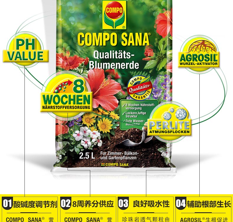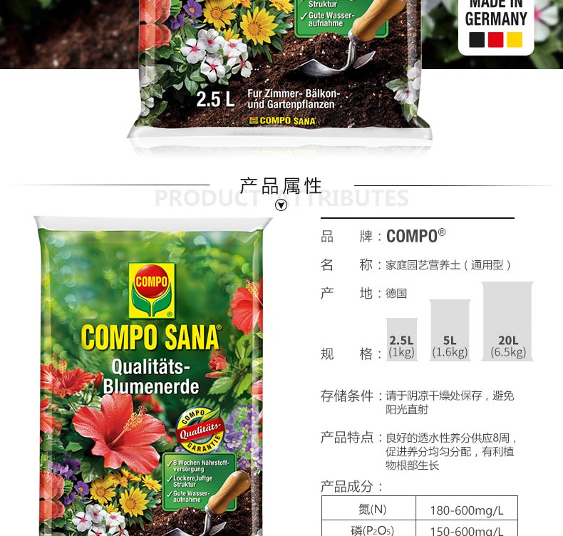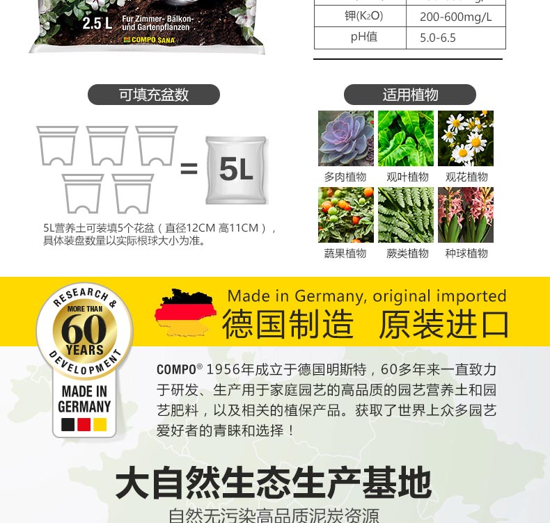 适用对象:通用型;性状:固体;营养类型:其它;品牌:COMPO;包装清单:COMPO 家庭园艺室内外花卉盆栽植物通用型泥炭种植营养土 2.5L*1;