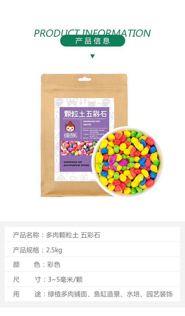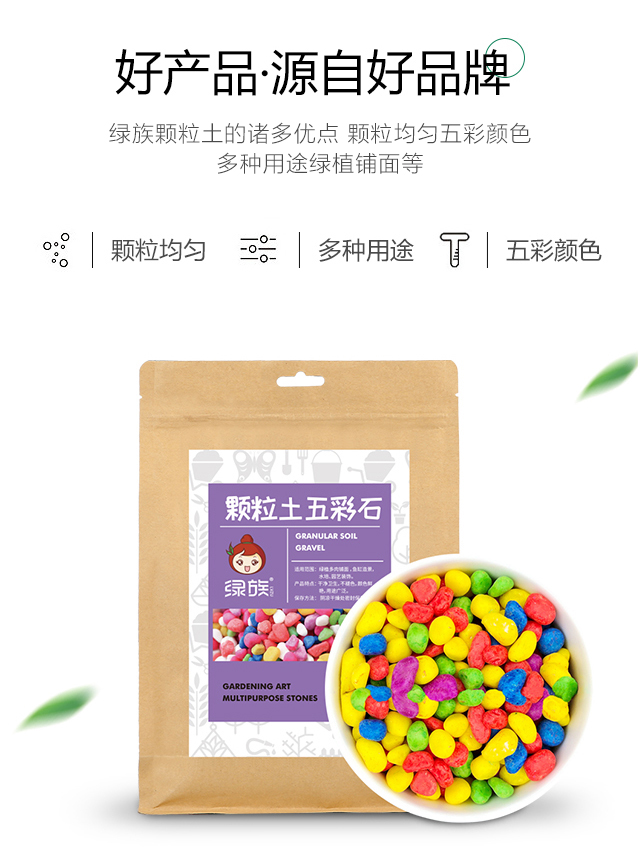 类型:石砾;品牌:绿族;包装清单:五彩石*1袋;