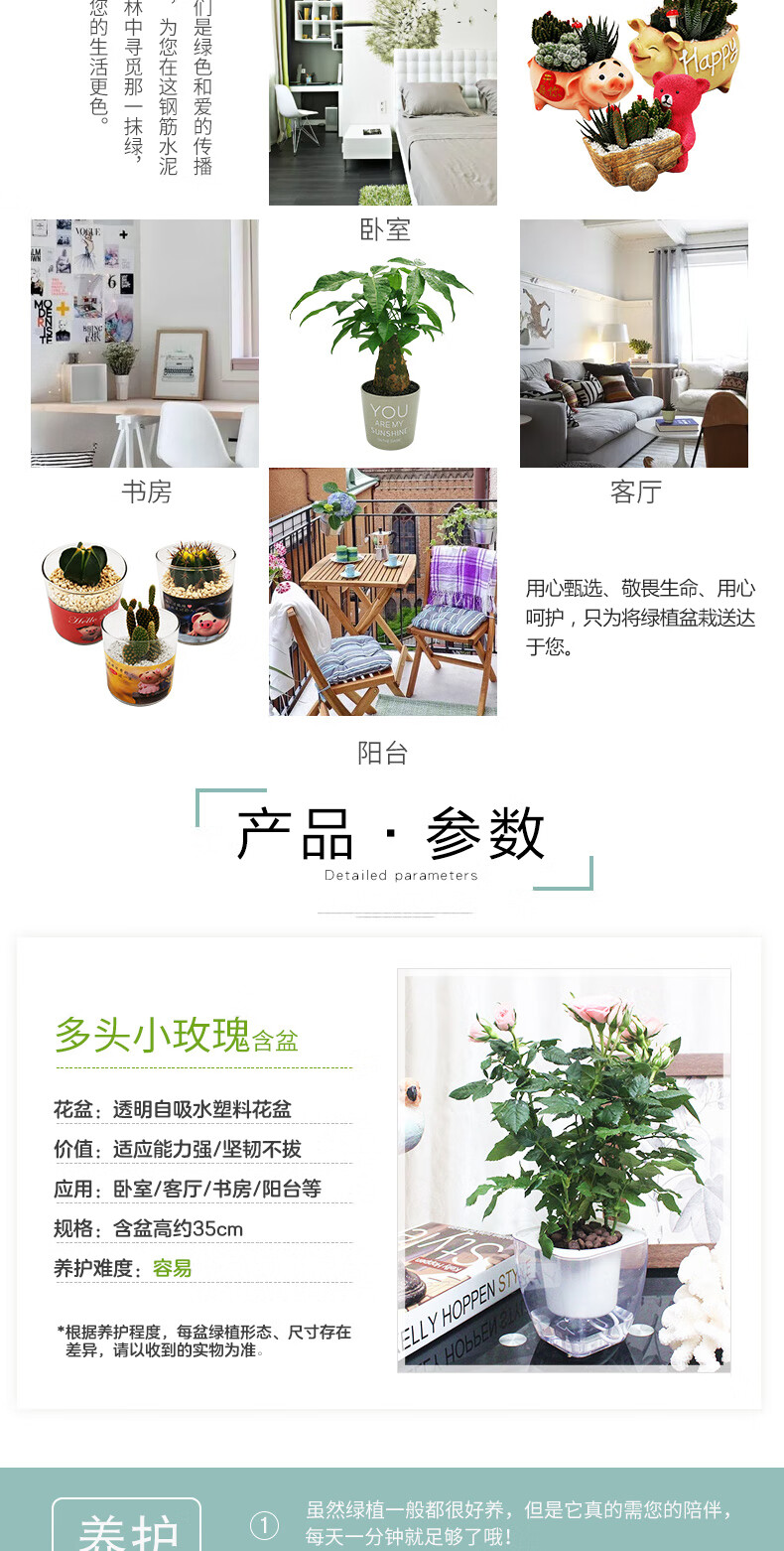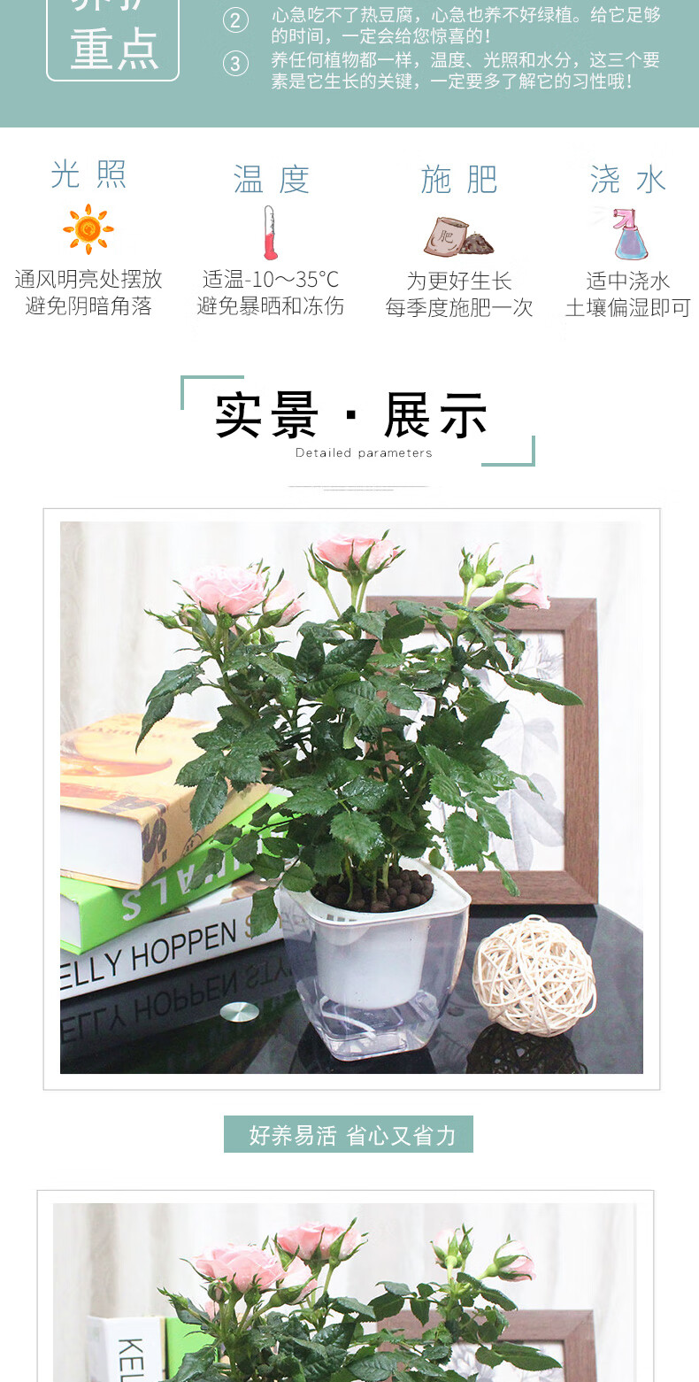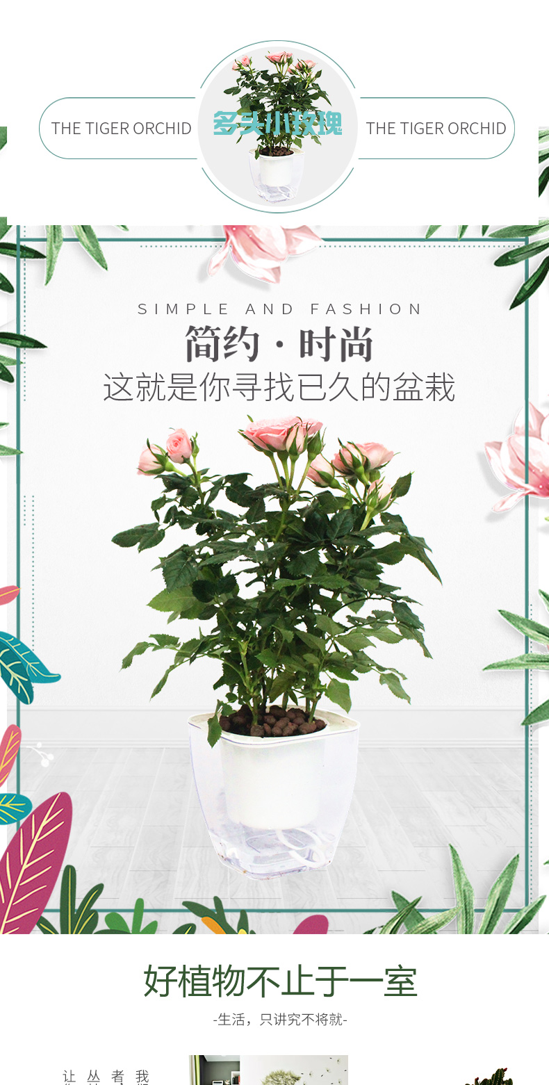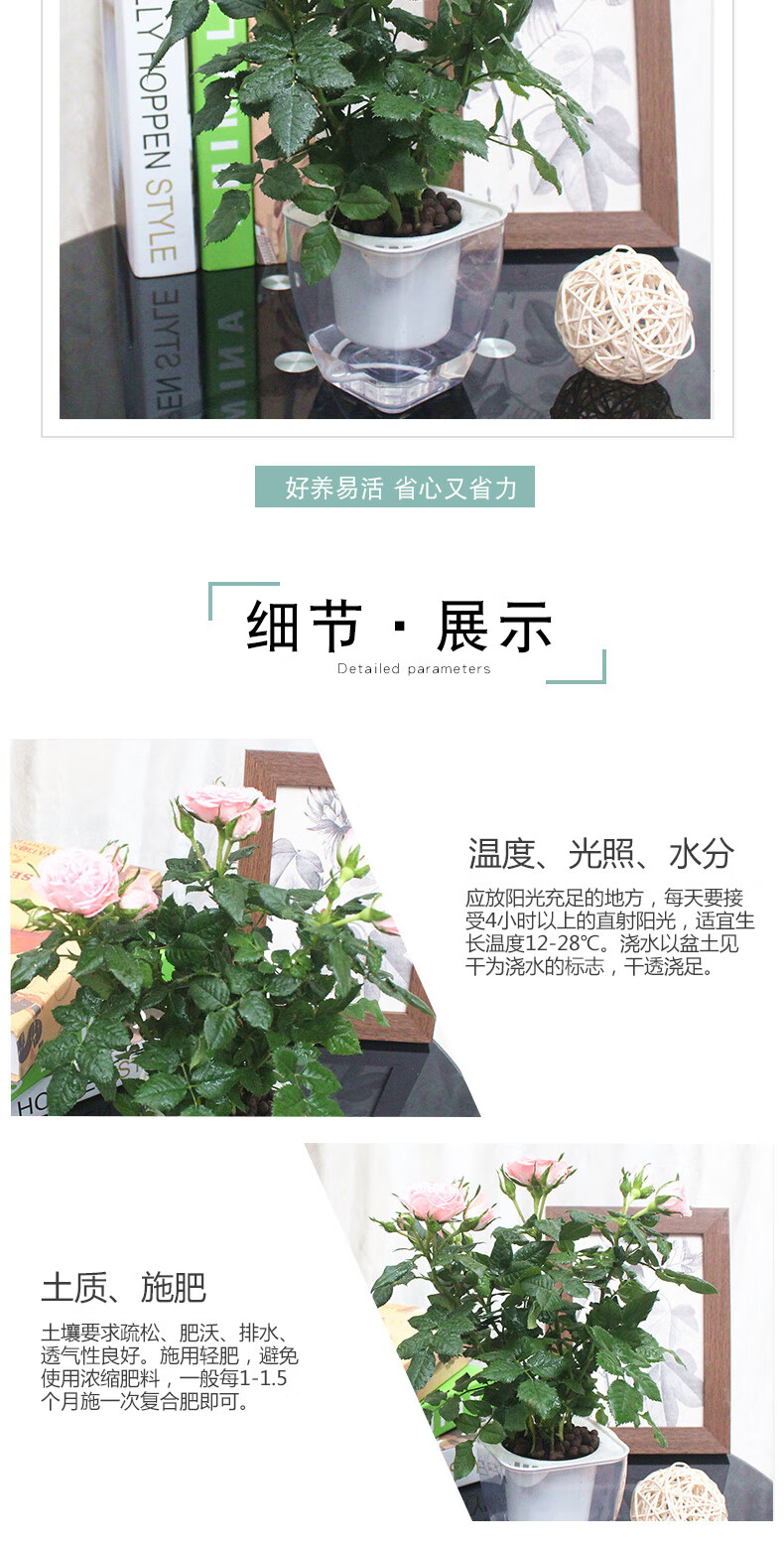 植物品种:其它;是否含花盆:带盆栽好;植物类别:观叶植物;适用空间:阳台,客厅,办公桌,书房;包装清单:多头小玫瑰X1、透明自吸水塑料花盆X1、包装箱X1。;