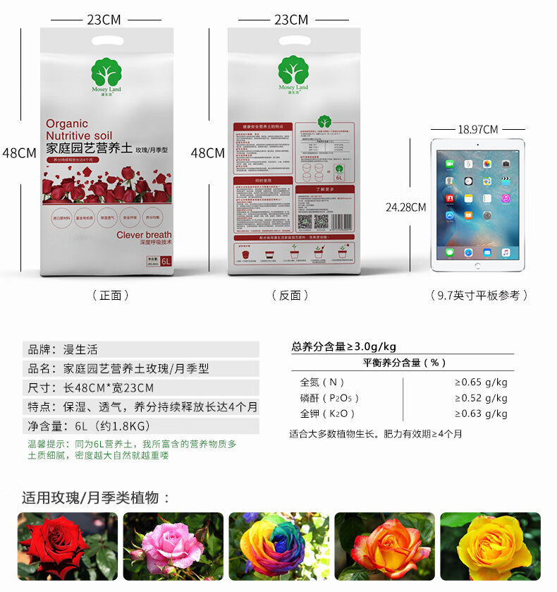 类型:椰糠;品牌:漫生活;包装清单:玫瑰/月季型营养土6L/1袋;