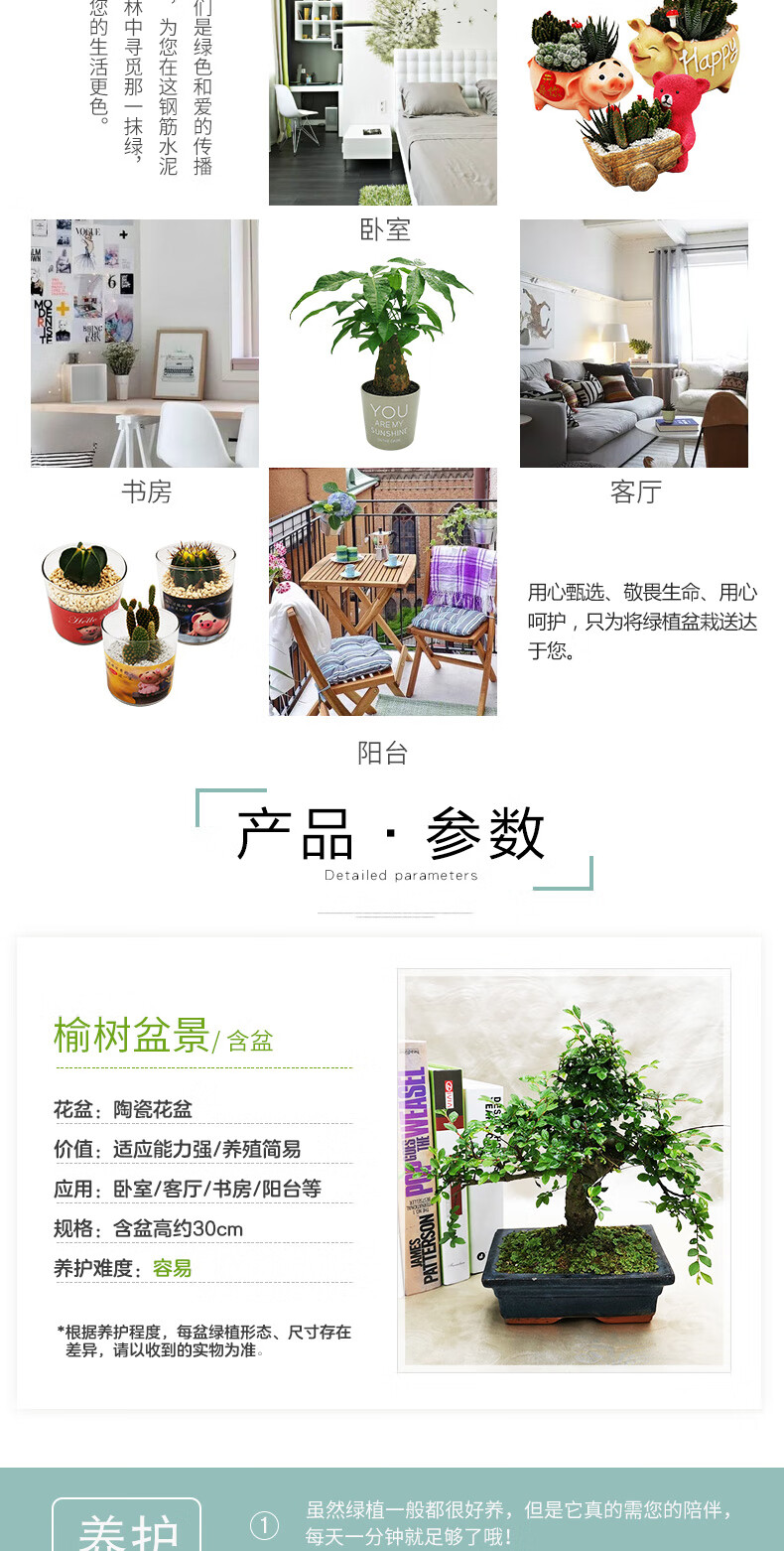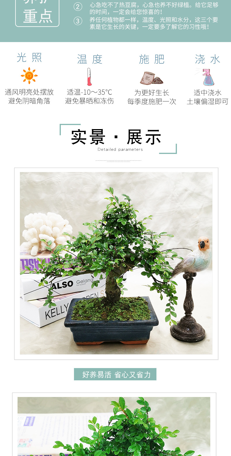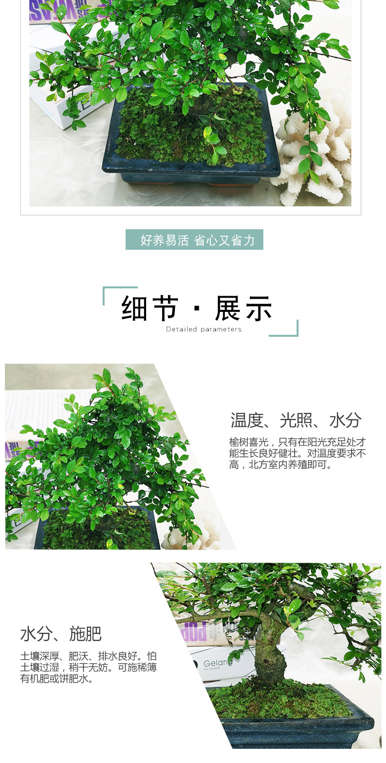 植物品种:其它;是否含花盆:带盆栽好;植物类别:观茎植物;适用空间:庭院,阳台,办公桌,书房;包装清单:榆树盆景X1、陶瓷花盆X1、包装箱X1。;