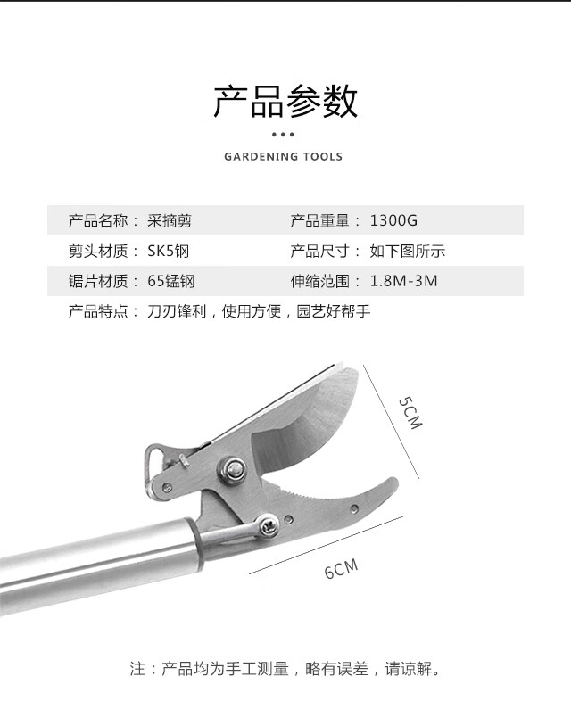 铲/耙/锹/锄:其它;洒水浇水壶:其它;分类:刀/剪/锯;材质:高碳钢/工具钢;刀/剪/锯:高空采摘剪;产地:国产;品牌:VMP;包装清单:采摘剪一把;