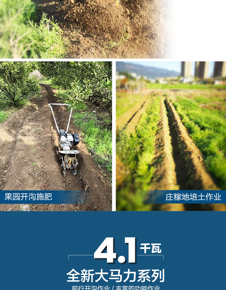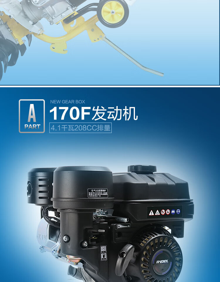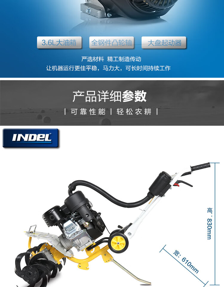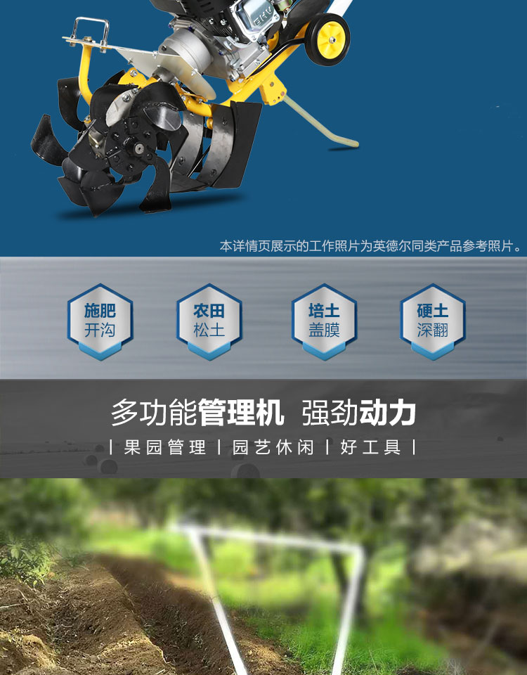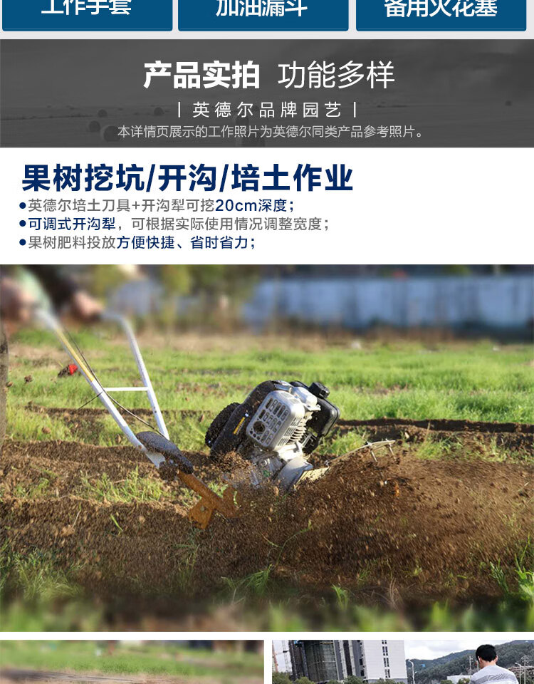 传动类型:直传动;动力类型:汽油机驱动;包装清单:微耕机主机1台、扶手架1套、可拆式防缠刀1付、6叶培土刀1付、开沟犁1付、阻力杆1根、加长空滤器1套、工具1套、使用说明书及三包凭证1本。;