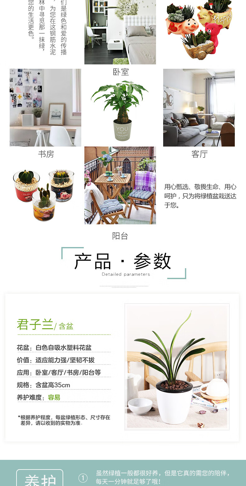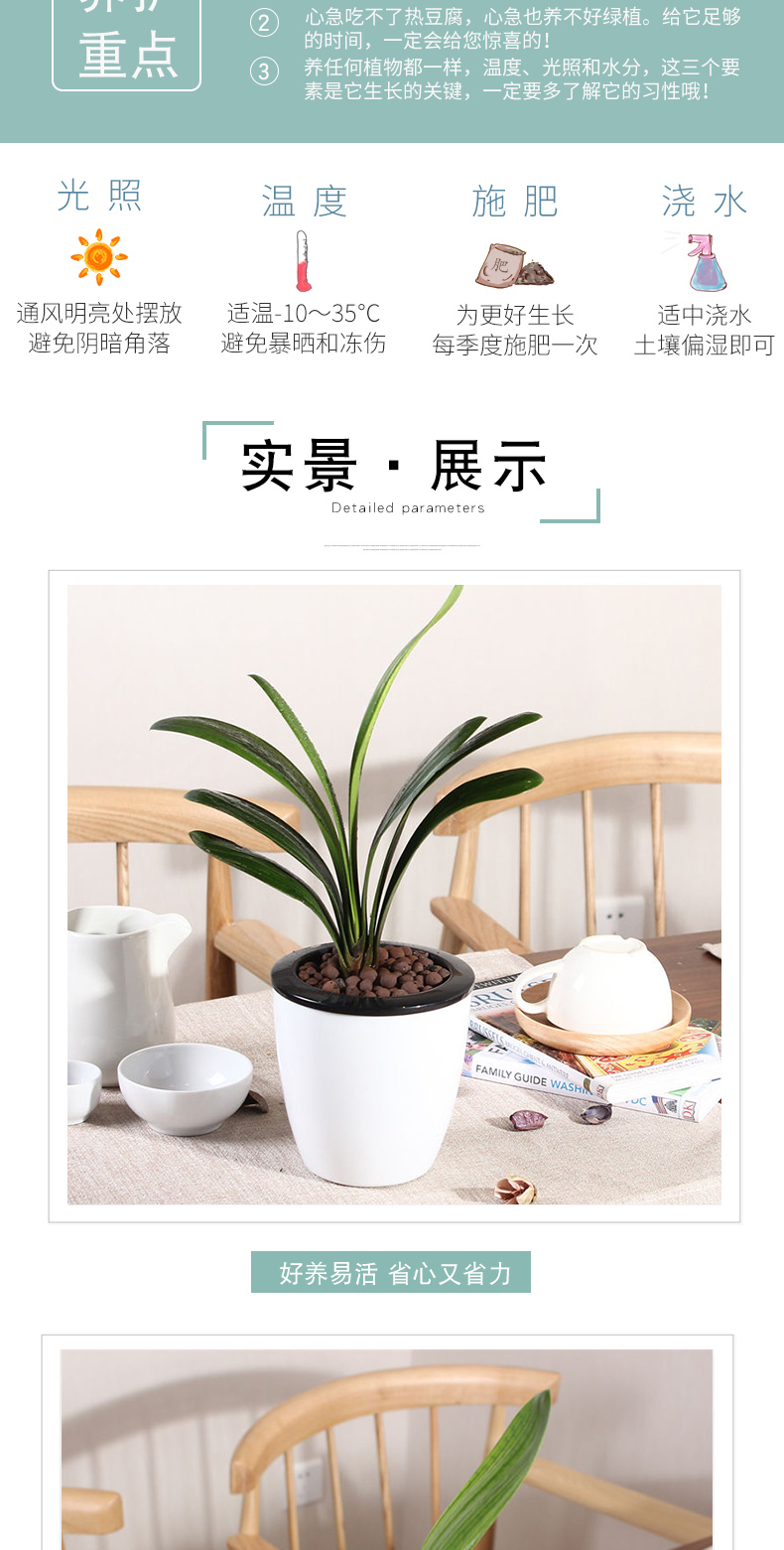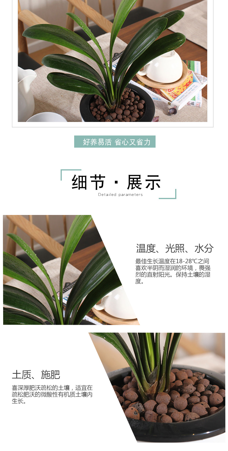 植物品种:其它;是否含花盆:带盆栽好;植物类别:观叶植物;适用空间:阳台,客厅,办公桌,书房;包装清单:君子兰X1、白色自吸水塑料花盆X1、包装箱X1。;