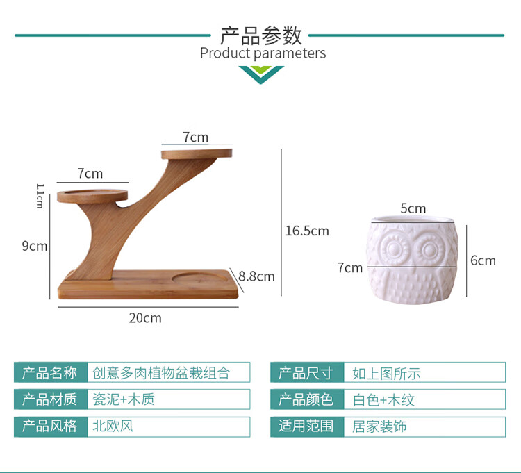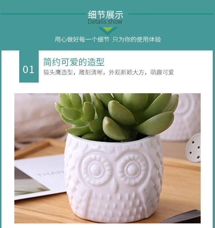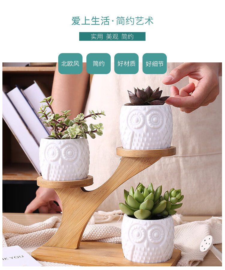 风格:简约;附加功能:多功能;尺寸:31cm以上;材质:陶瓷;适用空间:桌面,地面;底部留孔:有孔;品牌:奥美优;包装清单:猫头鹰+树梢(不含植物)*1套;
