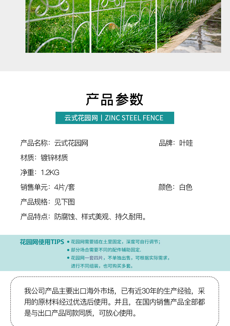 风格:田园;材质:铁;适用空间:地面;品牌:叶哇;包装清单:云式花园网*4;