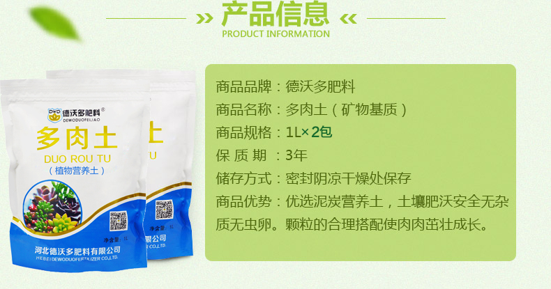 类型:复合基质;品牌:德沃多肥料;包装清单:多肉营养土1L*2;
