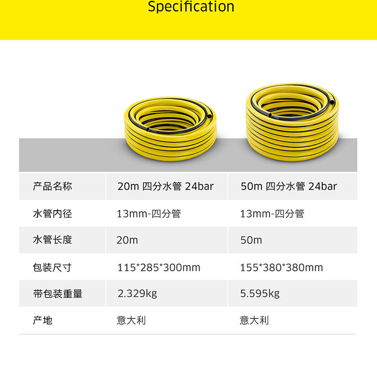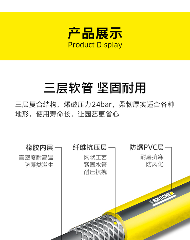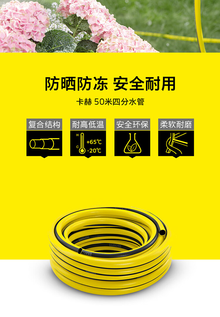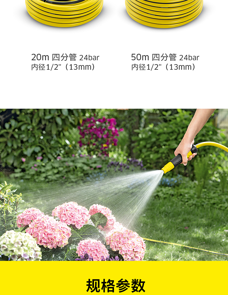 国产/进口:进口;分类:水枪/水管/水管车;品牌:卡赫(KARCHER);包装清单:50米4分管*1;