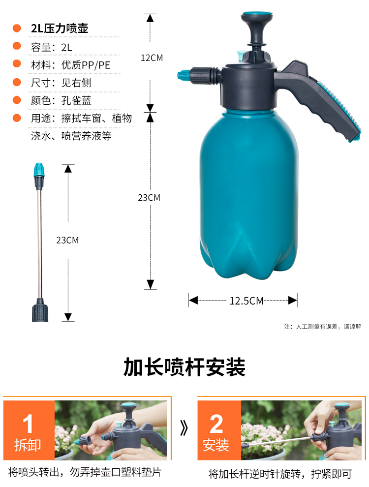 洒水浇水壶:喷壶;分类:洒水浇水壶;品牌:漫生活;包装清单:2L喷水壶(壶体内附加长喷杆);