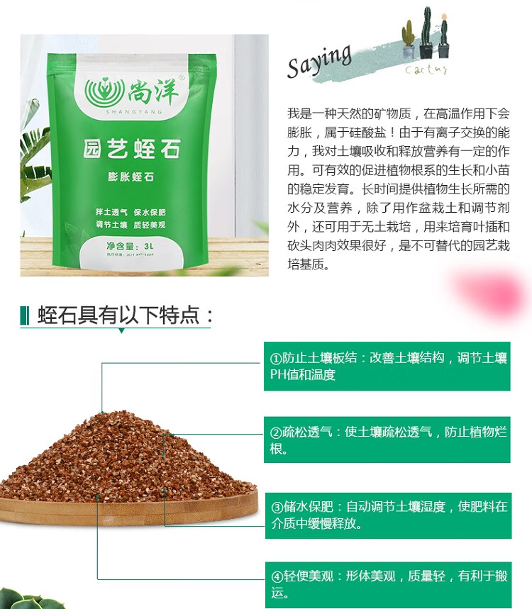类型:蛭石;品牌:尚洋;包装清单:3L蛭石*1;