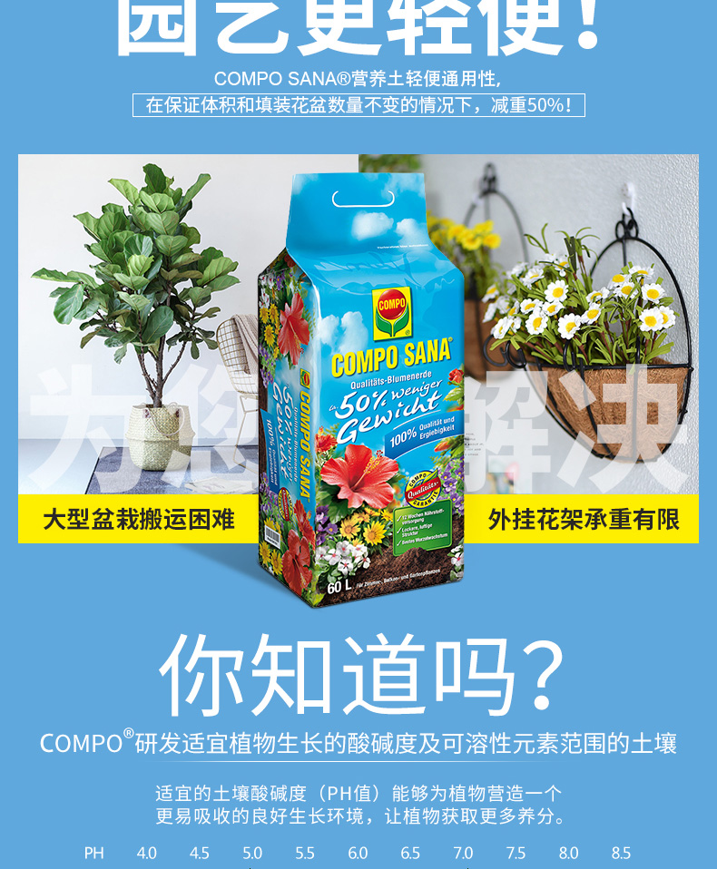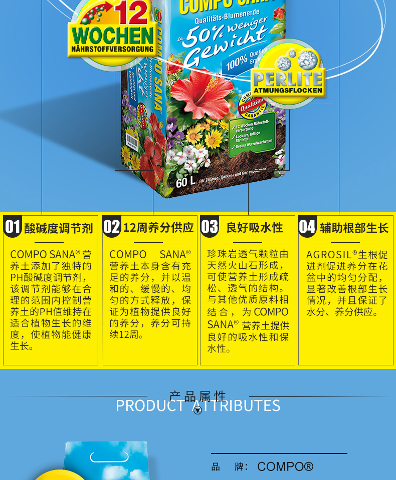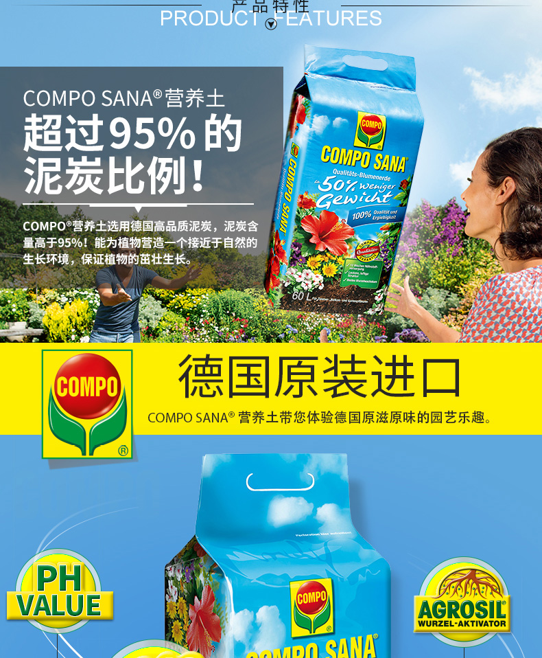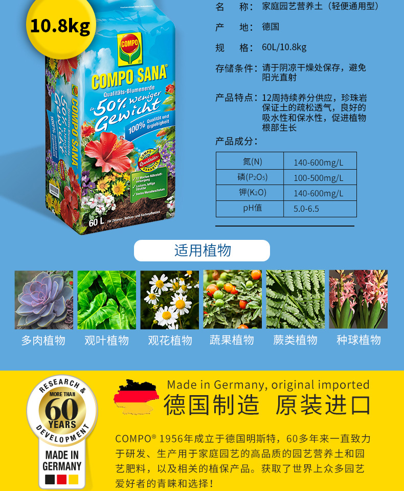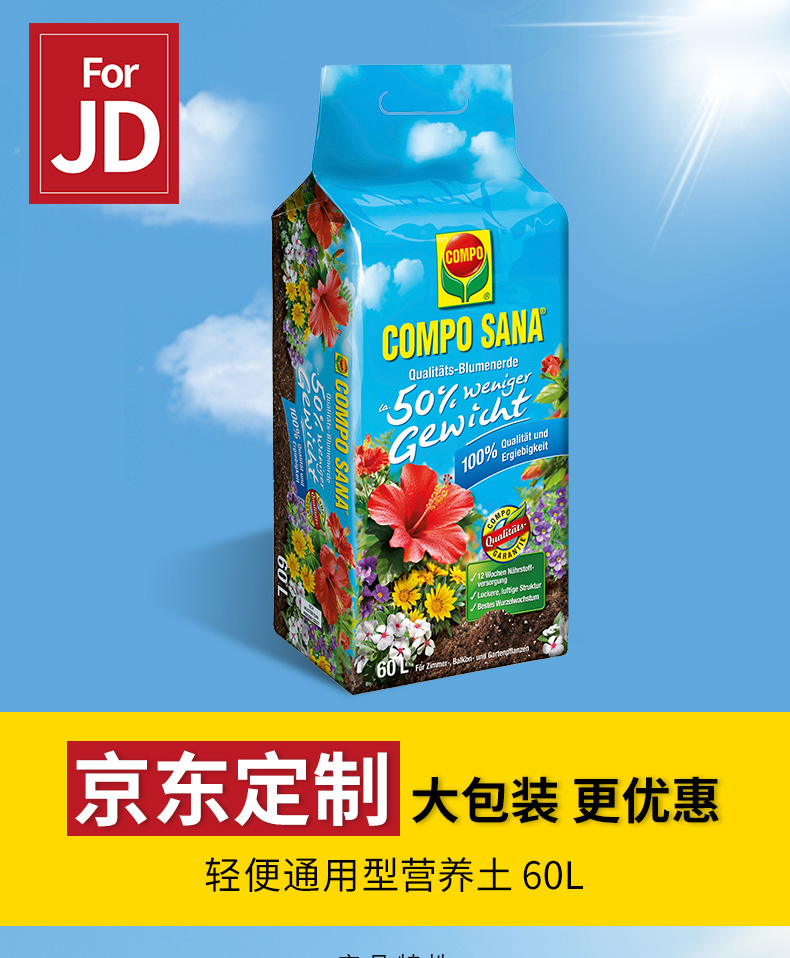 类型:泥炭;品牌:COMPO;包装清单:COMPO 家庭园艺大型盆栽泥炭土种植土轻便通用型营养土 60L*1;