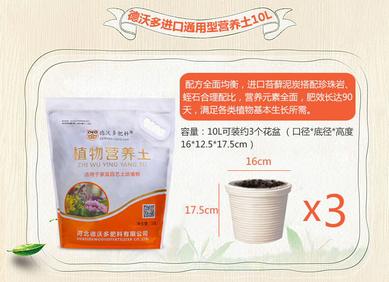 类型:泥炭;品牌:德沃多肥料;包装清单:通用营养土10L;