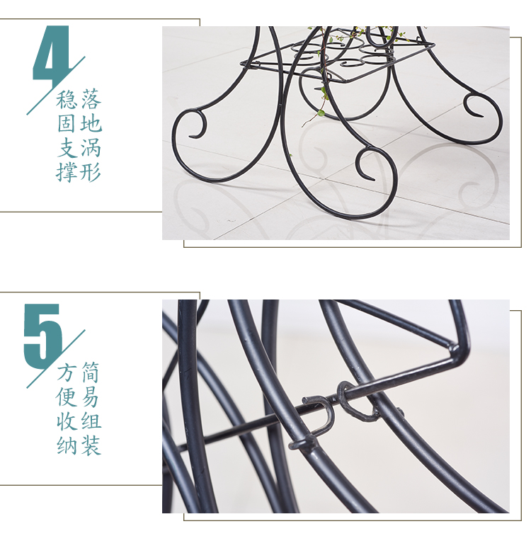 风格:欧式;附加功能:拆装,折叠;尺寸:31cm以上;材质:金属;适用空间:地面;底部留孔:有孔;品牌:叶哇;包装清单:折叠花架#1 涡形金属网片#1;
