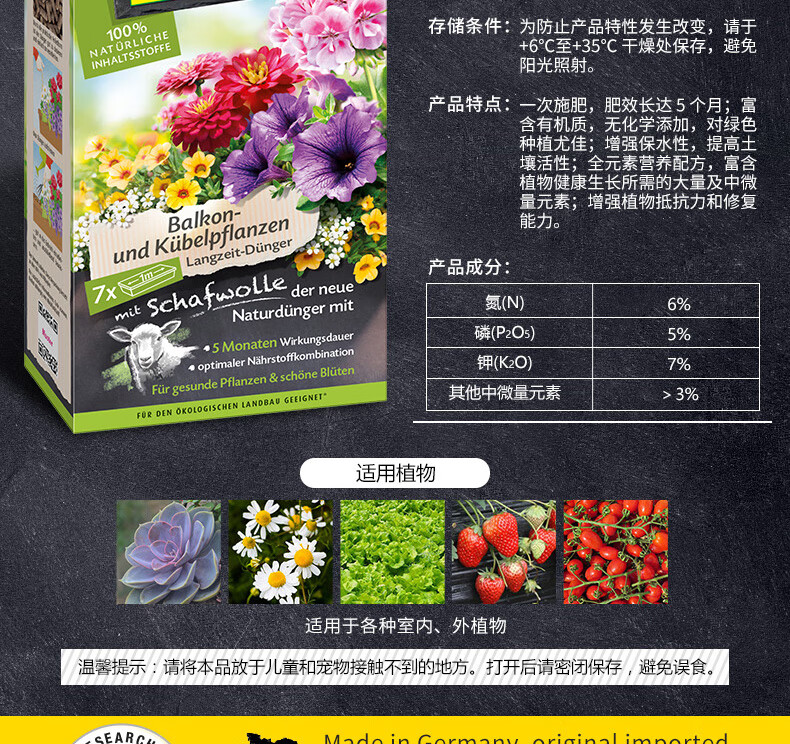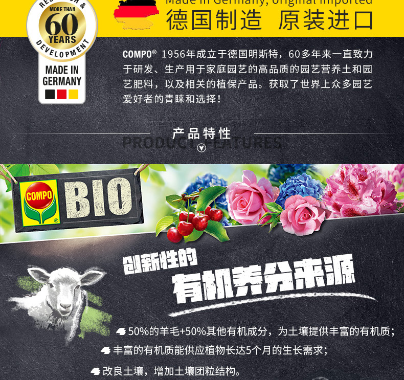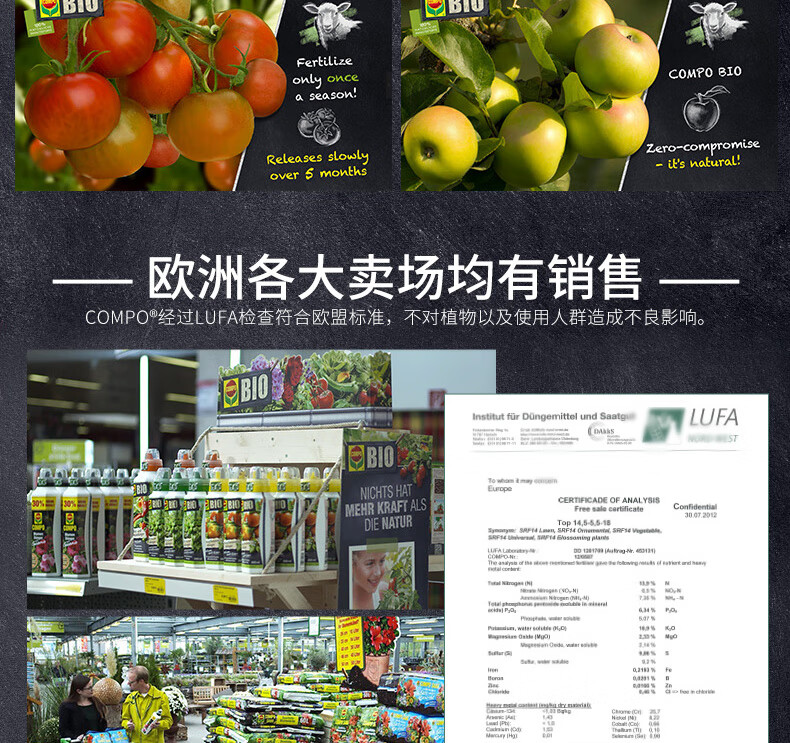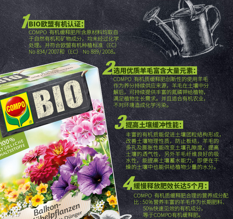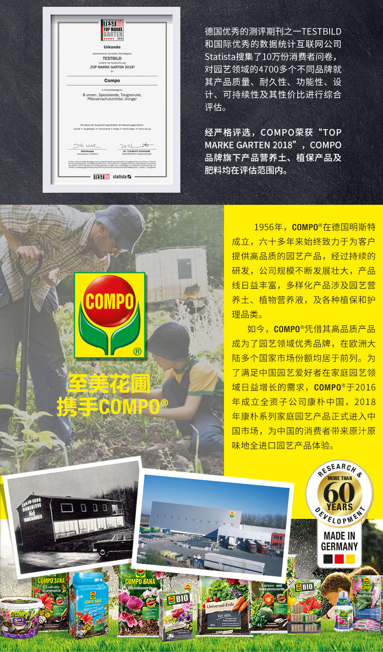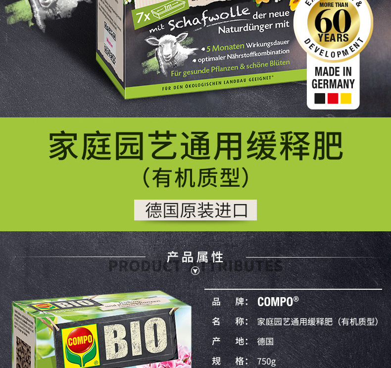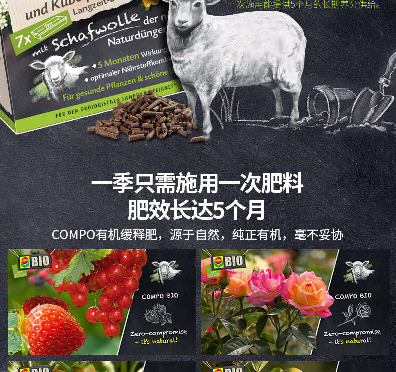 适用对象:蔬菜水果,通用型;性状:固体;营养类型:有机肥;品牌:COMPO;包装清单:COMPO家庭园艺蔬果多元复合固体缓释 通用有机质肥料 750g*1;