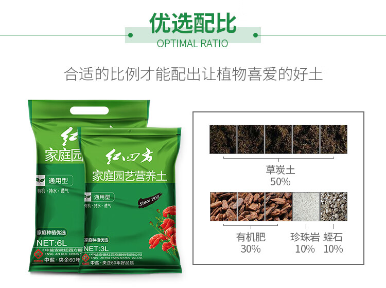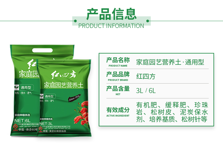 类型:复合基质;品牌:红四方;包装清单:6升土;