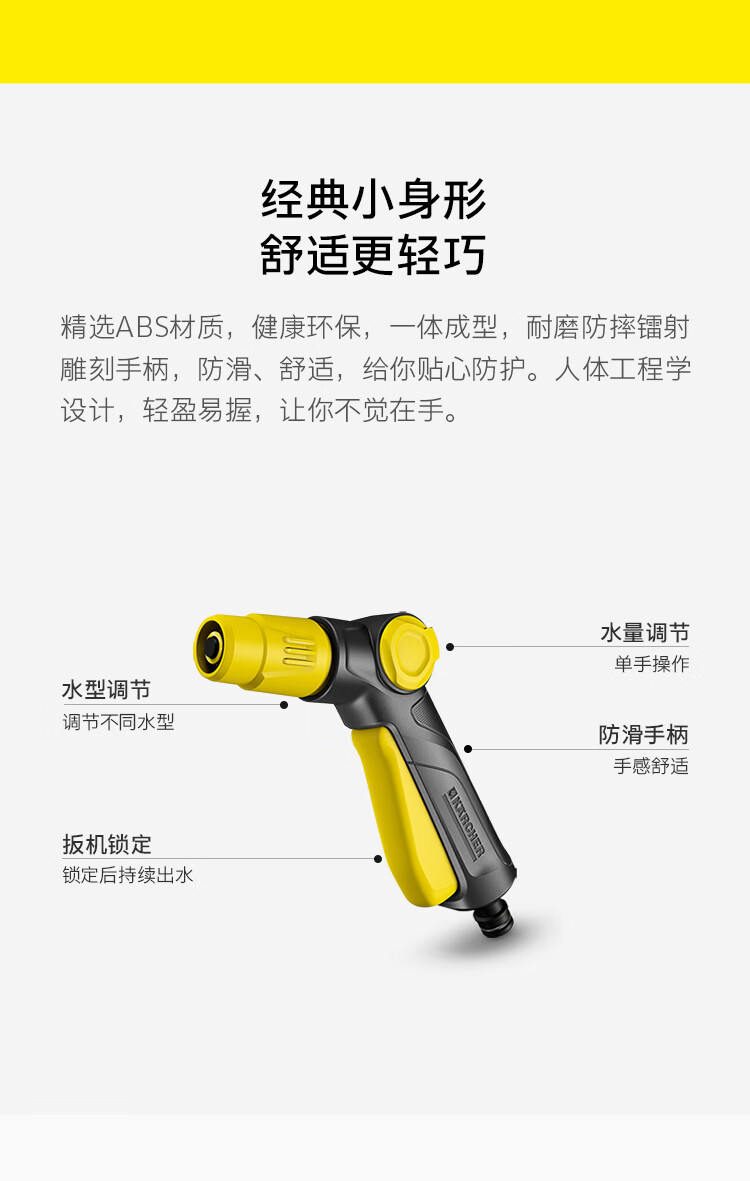 材质:塑料;国产/进口:进口;分类:水枪/水管/水管车;品牌:卡赫(KARCHER);包装清单:洒水枪*1;