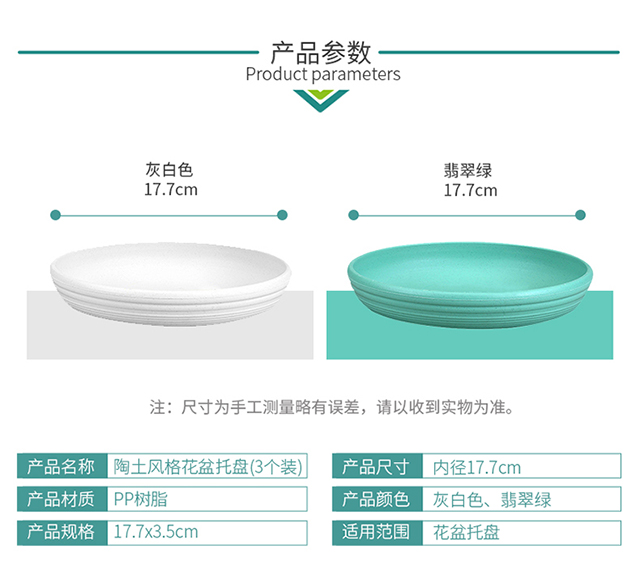 风格:现代;尺寸:16-20cm;材质:树脂;适用空间:桌面,地面;底部留孔:无孔;尺寸:17.7*17.7*3.5cm;品牌:奥美优;包装清单:花盆托盘*3个;