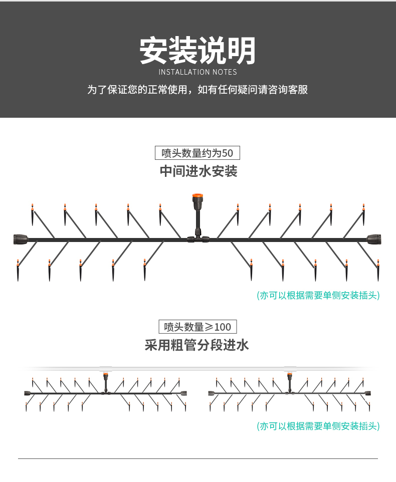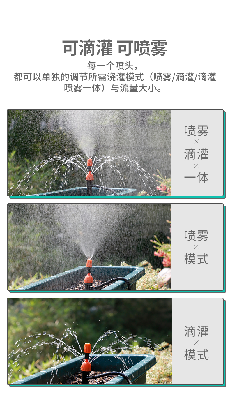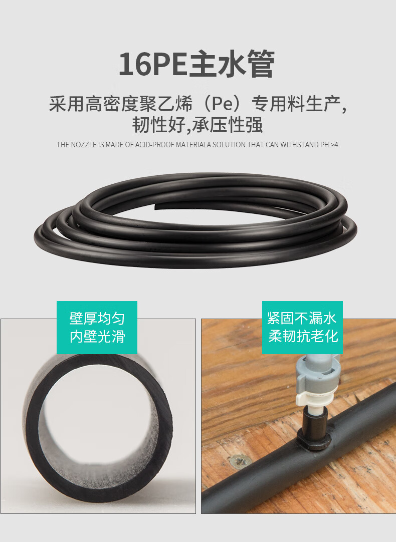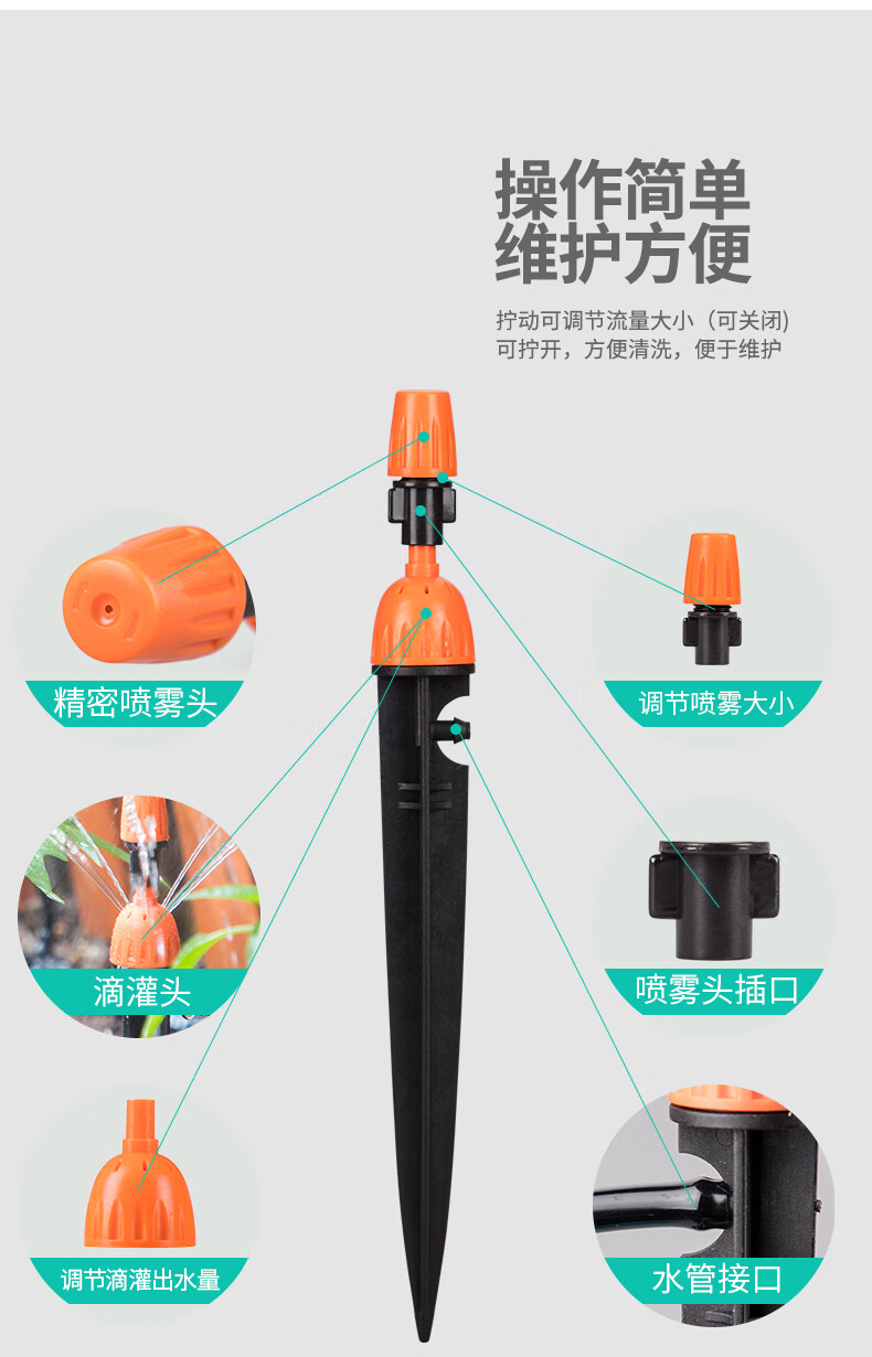 国产/进口:国产;分类:滴灌;品牌:南水灌溉;包装清单:4/6分接头*2 16PE管*100米 双倒钩*100 喷头*100 4/7管*50米 三通*4 直通*4 弯头*4 堵头*4 打孔器*1;