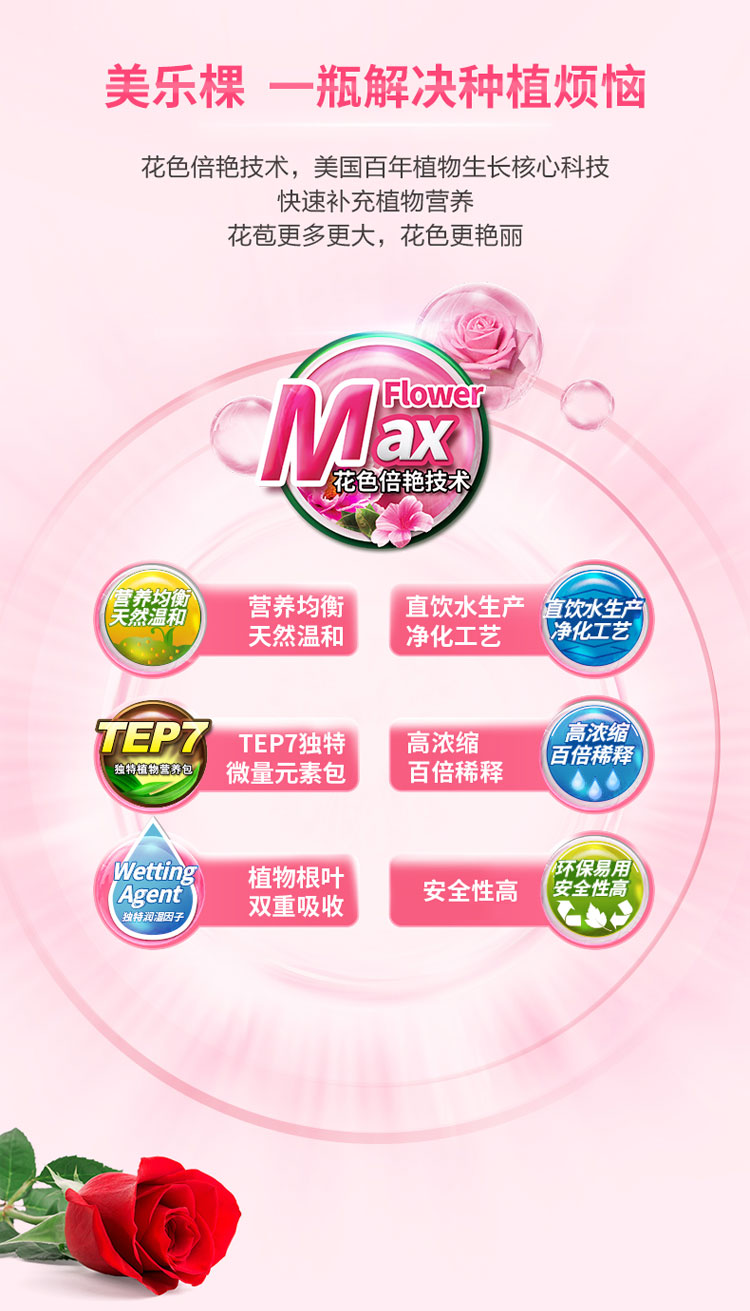 适用对象:观花植物;性状:液体;营养类型:营养液;品牌:美乐棵;包装清单:商品X1;