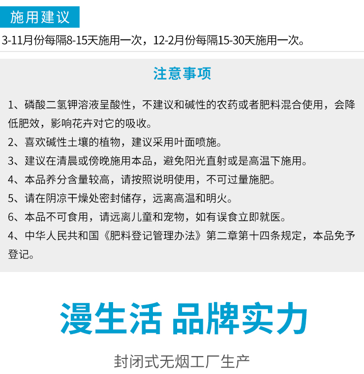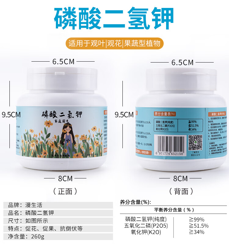 营养类型:水溶性肥料;品牌:漫生活;包装清单:磷酸二氢钾肥料260g/瓶;