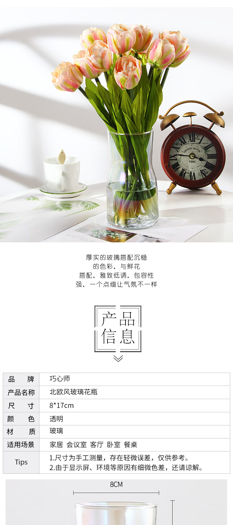 材质:玻璃;底部留孔:无孔;尺寸:16-20cm;品牌:巧心师;包装清单:花瓶;