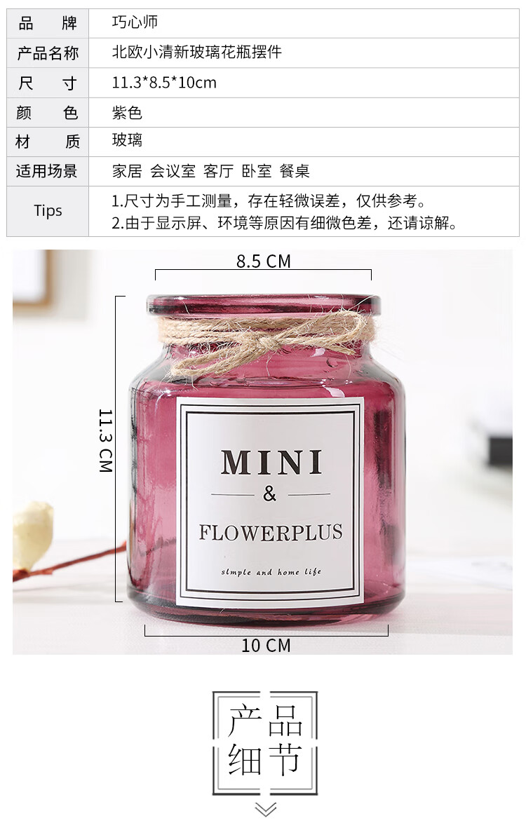 材质:玻璃;底部留孔:无孔;尺寸:11-15cm;品牌:巧心师;包装清单:花瓶;