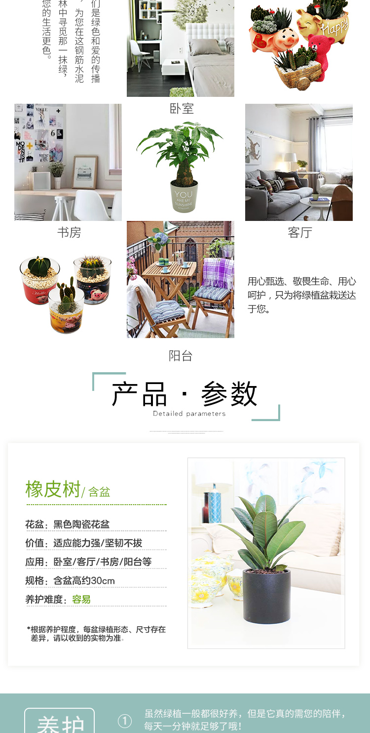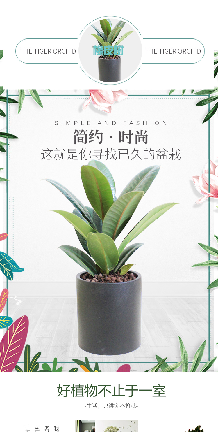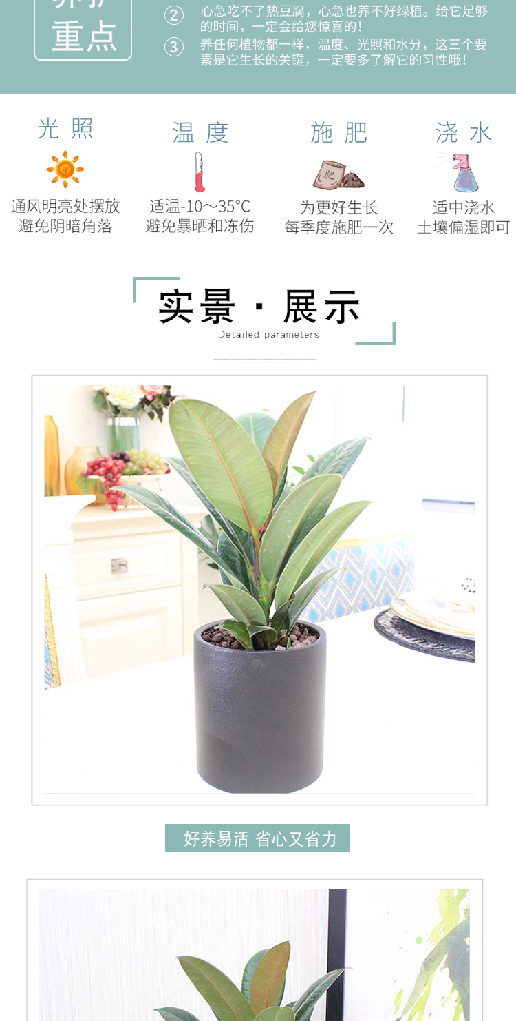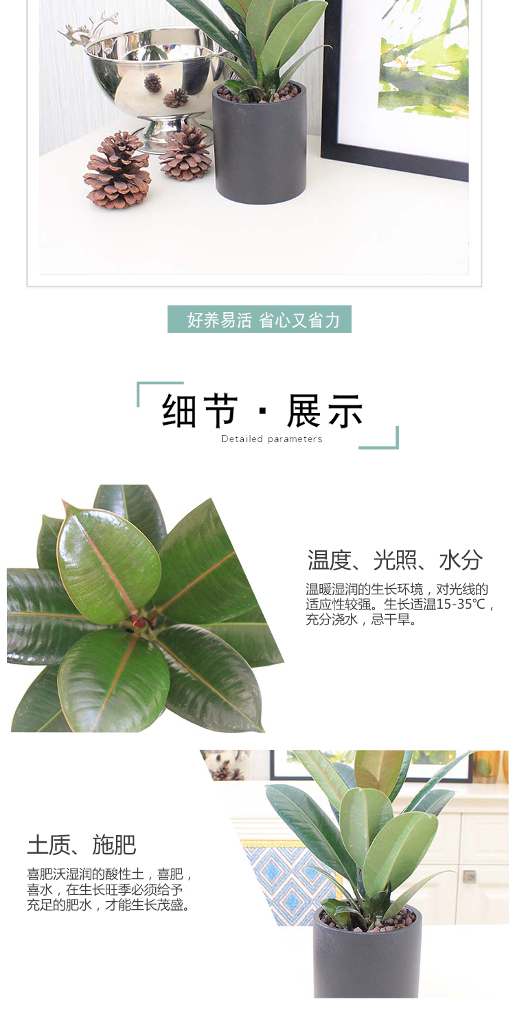 植物品种:橡皮树;是否含花盆:带盆栽好;植物类别:观叶植物;适用空间:阳台,客厅,办公桌,书房;包装清单:橡皮树X1、黑陶花盆X1、包装箱X1。;