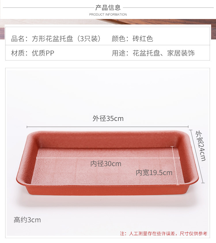 材质:塑料;底部留孔:无孔;尺寸:31cm以上;品牌:漫生活;包装清单:3个长方形花盆托盘;